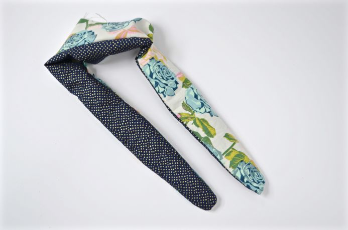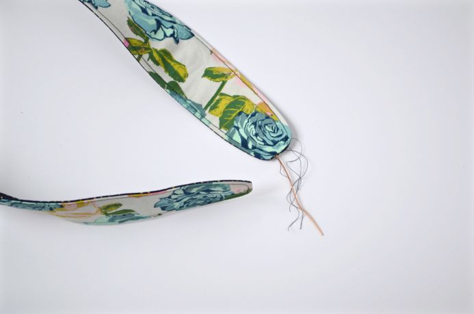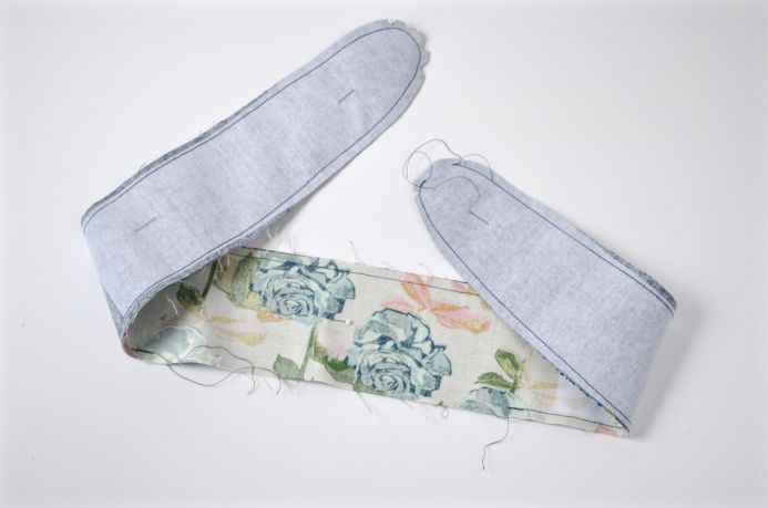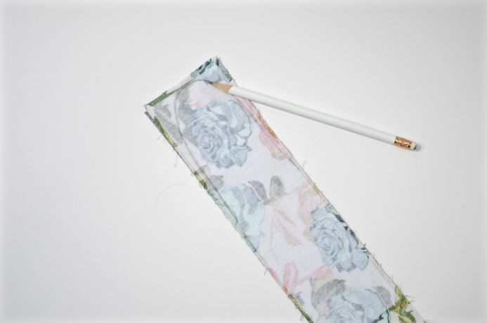 1. Following the manufacturer’s instructions, iron the interfacing to the ends of the strips of fabric.