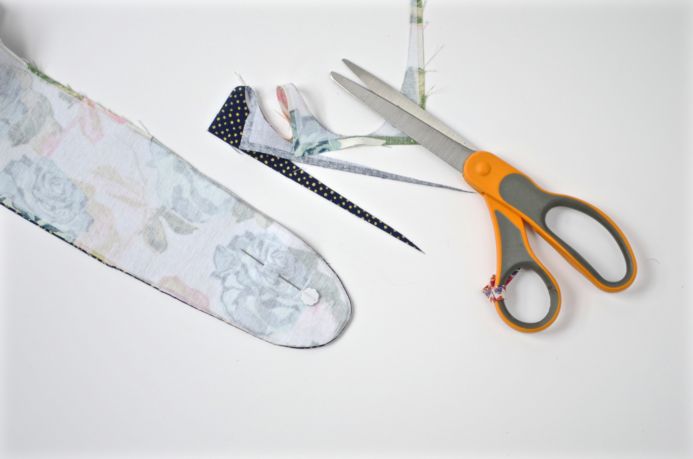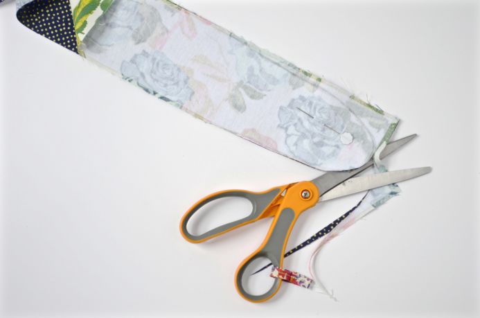 2. Using a pencil, draw a curved line on one of the ends. Cut away the excess fabric. Repeat on all ends.