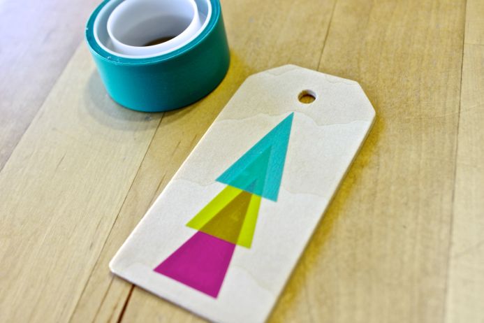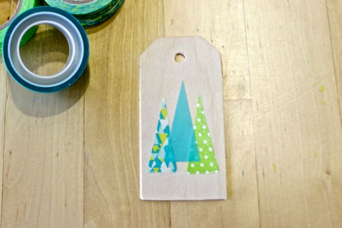 Tear off a piece of tape about 2 inches long and use your scissors to trim into a long triangle. Cut 2-4 triangles and layer them to create a cute cluster of trees in different colors/patterns.