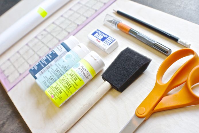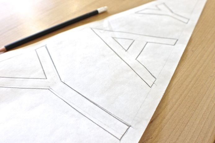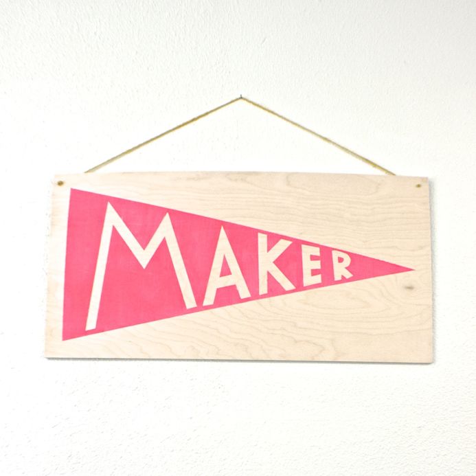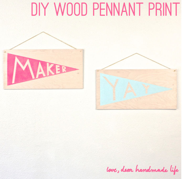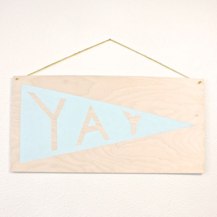 This project marries two of my current favorite trends: plywood and pennant flags, and the results could not be cuter. So gather your supplies and get ready to freezer paper stencil all the things!
