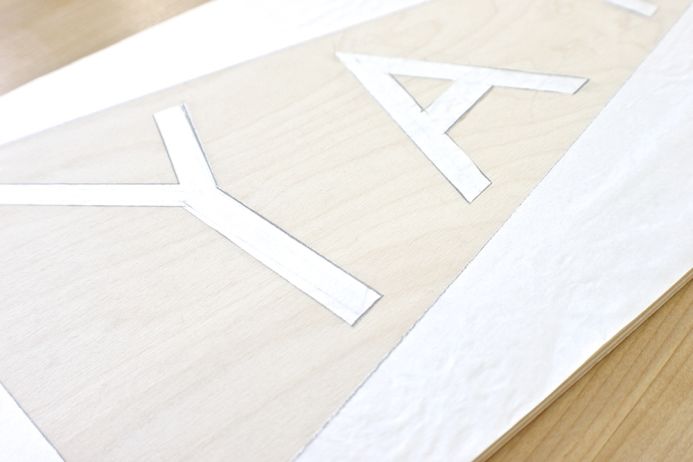 8. Lay out your stencil pieces on your plywood (shiny side down) and press in to place with your iron.