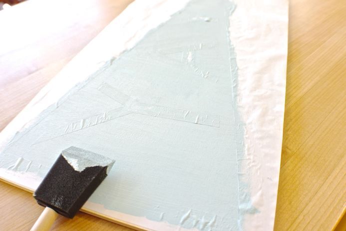 10. Once dry, remove your freezer paper stencil. The freezer paper might not come completely off your board, but you can pick at the pieces left behind with a pair of craft tweezers pretty easily.
