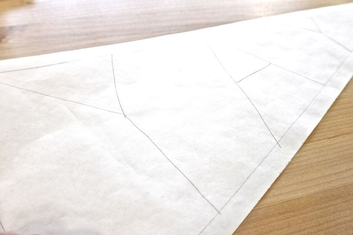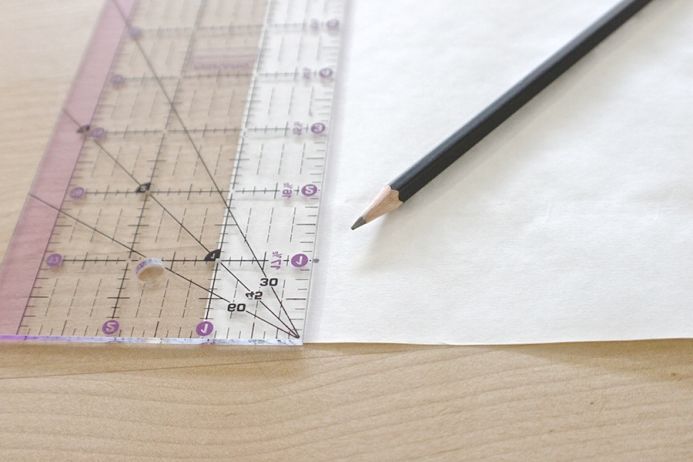 1. To start, make sure you’re working with the shiny side down. On the left side of your freezer paper, place a mark 1” in and 1” up from the bottom, and repeat on the top (1” in and 1” down from the top). On the right side of your freezer paper, place a mark 1” in and 6” up from the bottom.
