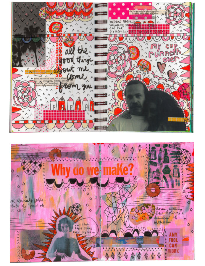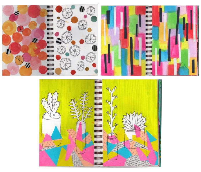 My sketchbook pages from Dawn DeVries Sokol’s Art Journaling: