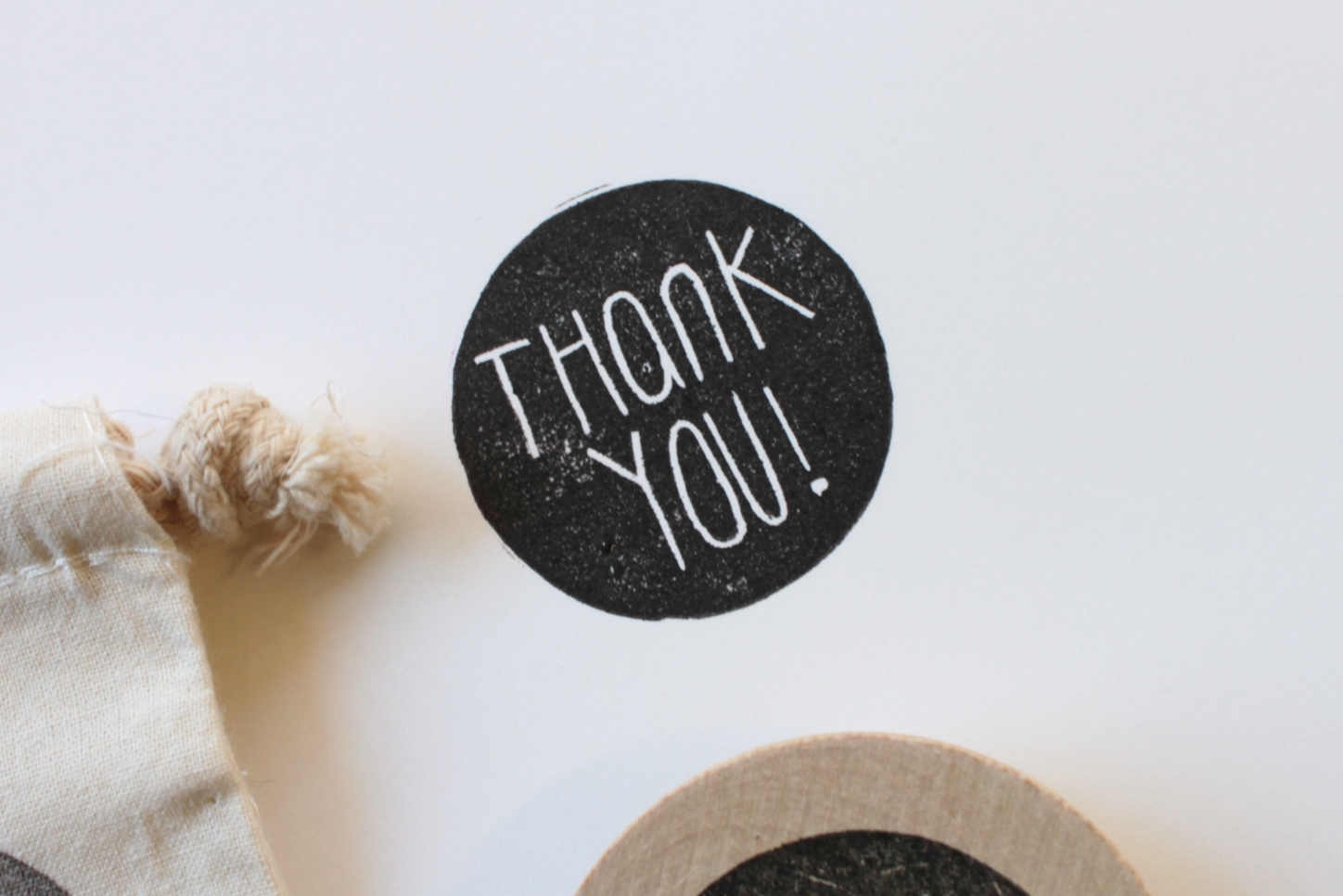 I like to mount my custom stamps to a wooden block. Not only does it look fantastic, but it provides even pressure when you press down on your stamp. To do this, use your craft knife to cut away any rubber that won’t fit on the surface of your wooden block (I had to make my square into a circle), and use a strong adhesive, like super glue, epoxy or E6000. Don’t forget to stamp the top of your wooden surface before you glue down your rubber!