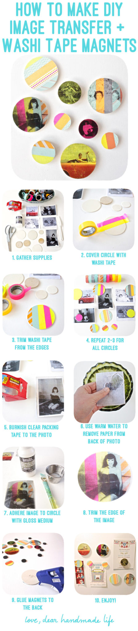 How to Make DIY Image Transfer and Washi Tape Magnets from Dear Handmade LifeHow to Make DIY Image Transfer and Washi Tape Magnets from Dear Handmade Life