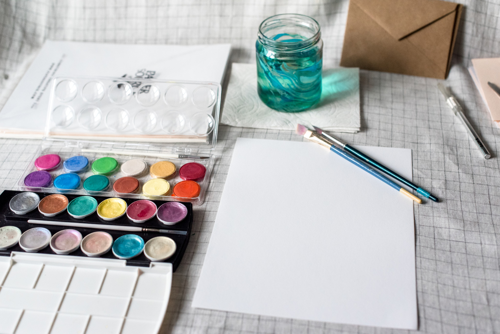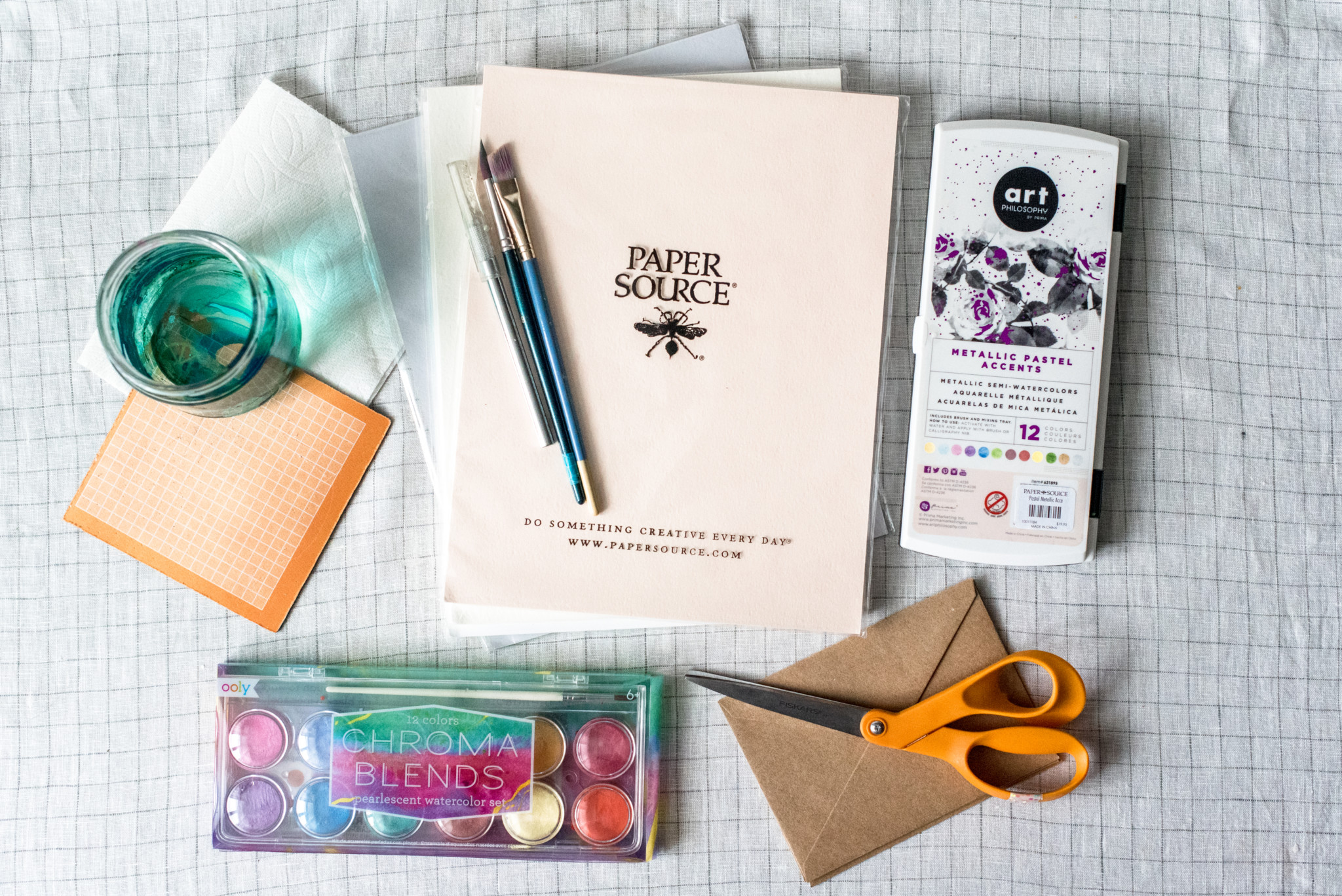 - Watercolors I used these sets from Paper Source: pearlescent and metallic