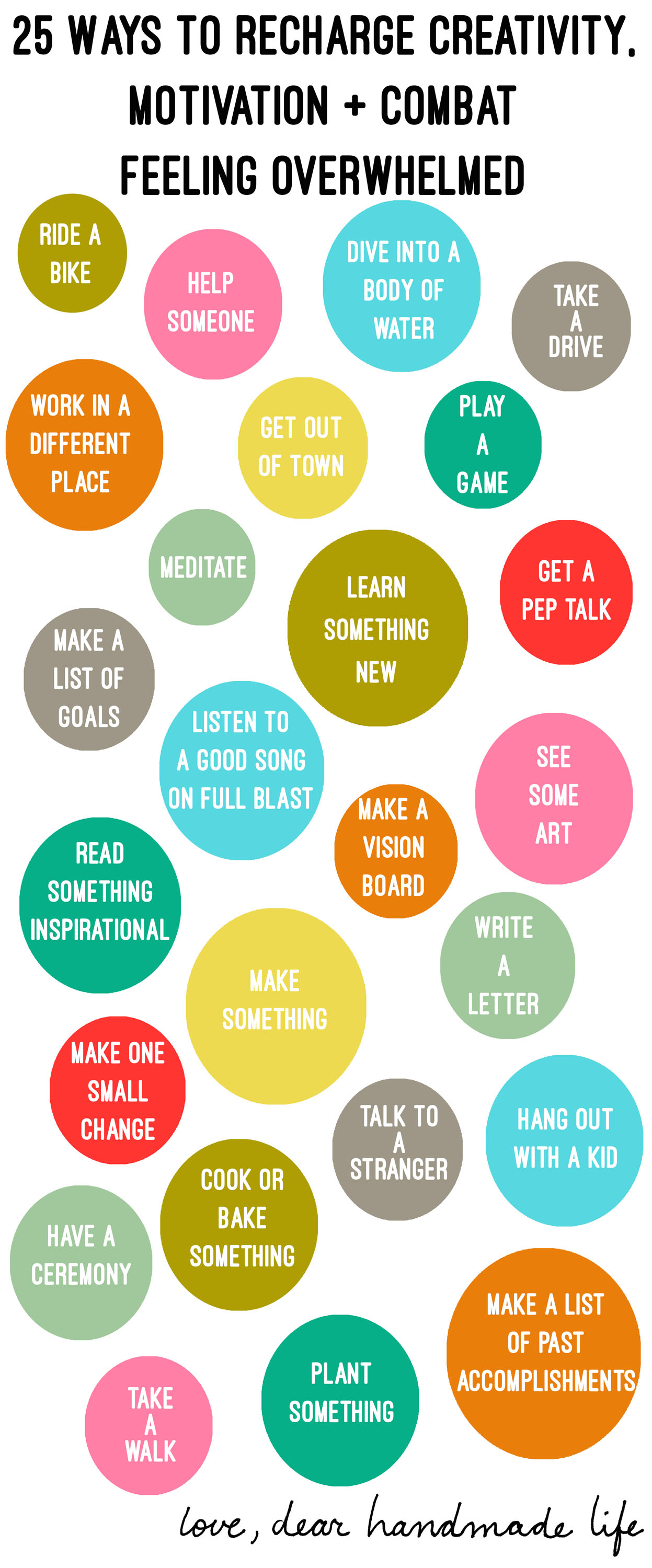 25 Ways to recharge creativity + motivation + combat feeling overwhelmed