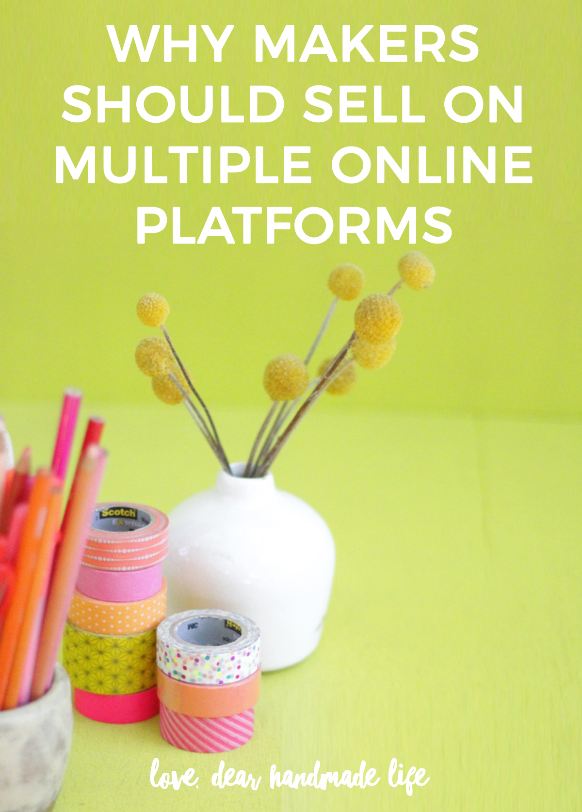 On a recent episode of our Dear Handmade Life Podcast, we talked with Megan Auman about multi-avenue marketing (which is a lot of what selling in different places is– see point #1). A lot of the conversation revolved around experimenting and figuring out what works for you.