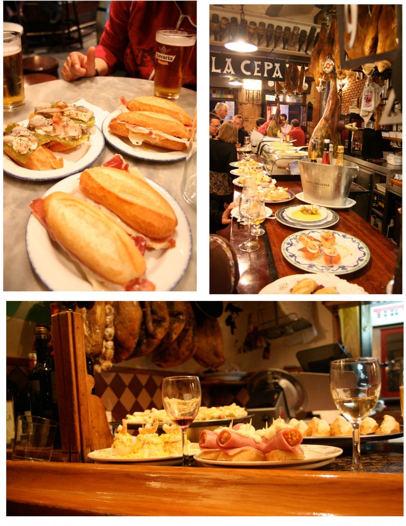the cobblestone streets are narrow and lined with the kind of buildings i’d seen only in history books. balconies and windows are full of flower pots and it seems you can’t toss a stone in any direction without hitting a church or a quaint spot for a drink with snacks laid out on the bar. these are not the type of snacks you get in an american bar. there were no bowls of already sifted through peanuts and pretzels, no crock pot on a table near the bathroom filled with crusty chili, no hot dogs and certainly no buffalo wings.