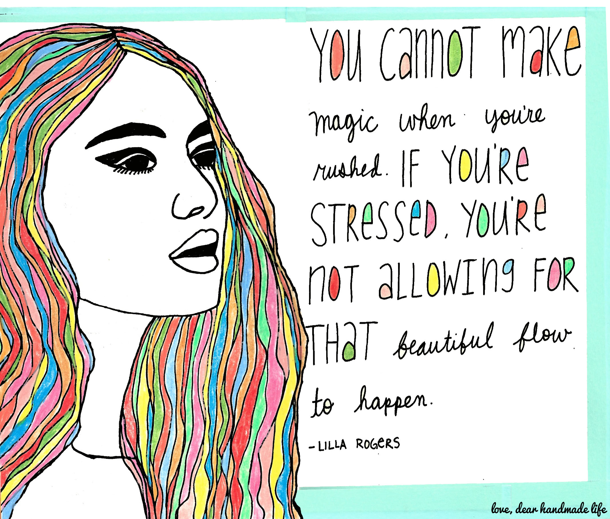 When I had my first meeting with life and business coach Tiffany Han, my life was completely overwhelming me. I was juggling teaching workshops (some up two hours from my house), finishing my second master’s degree, running the wholesale and retail sides (including an Etsy shop) of my clothing business-Random Nicole, co-producing Patchwork Show and Craftcation Conference, working on a memoir, doing freelance graphic design and illustration work for clients as well as occasionally consulting creatives about their businesses and writing for our blog Dear Handmade Life. Those are just the work commitments I had. On top of that I was planning my wedding and trying to keep up with obligations to family and friends as well as throw in some self-care (hello…healthy eating, meditation and the occasional trip to the gym). My life was rarely enjoyable and I always felt like I was trying to keep around a hundred plates spinning. Seeking help from someone who intimately knows my field and what it’s like to be an entrepreneur was one of the smartest things I did last year. Tiffany helped me deeply look at my commitments and truly discover which ones mattered the most. I let go of things that I felt like I should be doing but didn’t actually enjoy. I took a leave of absence from school, closed my Etsy shop and Random Nicole, cut down my teaching hours considerably (I only teach a few times a year now) and went from posting five times a week to three times a week on our blog. I also hired a very part time assistant (more about that below). Then I examined the things I wasn’t doing enough of, but truly enjoyed and had the potential to supplement the income that was now missing from both Random Nicole and teaching. I also had to start living on a very tight budget, which was hard at first, but now I rarely miss the things I had to cut back on. I decided to develop my design and illustration work and I’m happy to say the website for my design business show and tell design studio is now up and running! I’ll be honest, I still work crazy hours (especially now which is our busiest time of year, as we’re prepping for Craftcation and Patchwork). The difference is that now I’m enjoying my work a lot more. Once again I’m excited about what I’m doing for a living and it feel really really great about it!