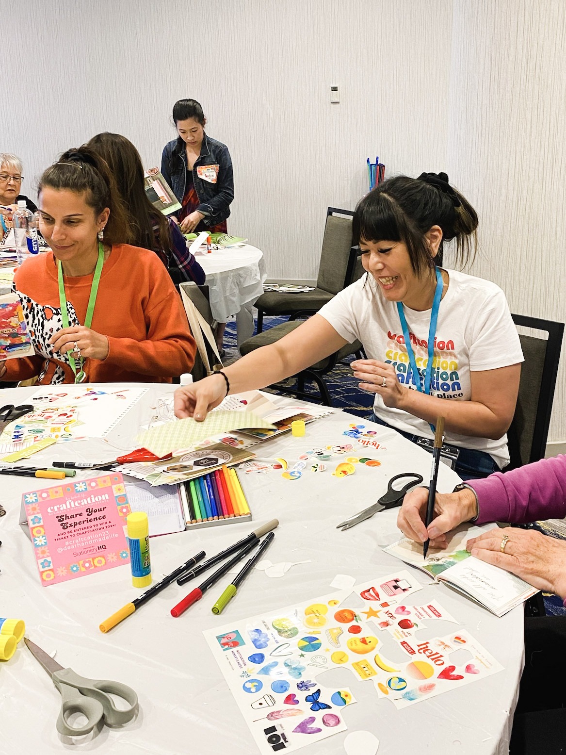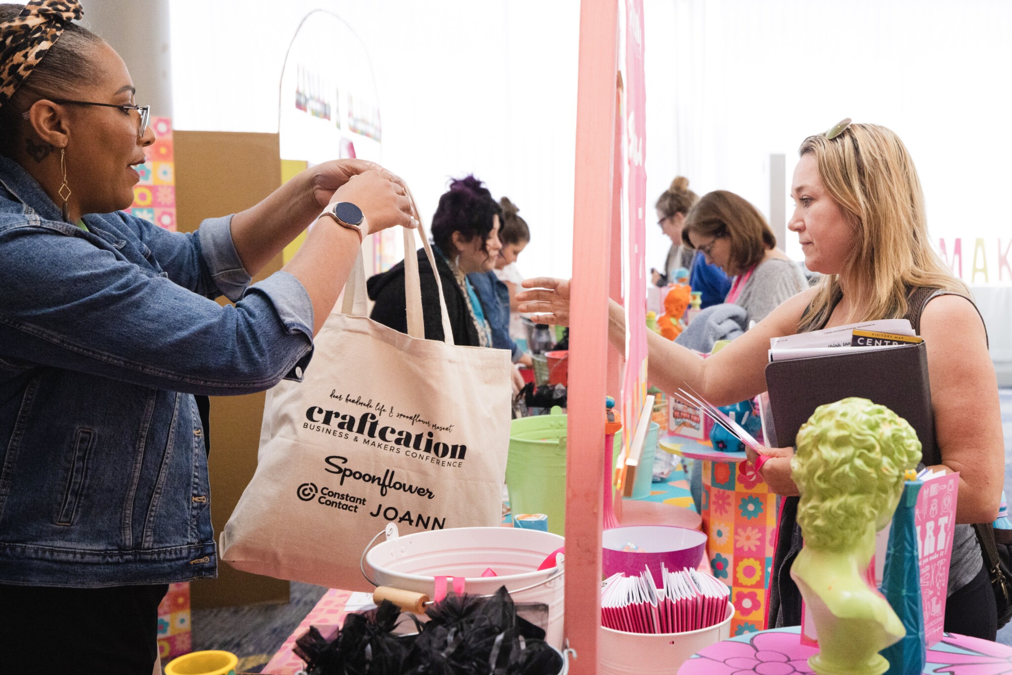 The Craftcation Business classes covered topics like branding, marketing, finance, sales, and so much more to help creatives grow their businesses. We also had panels featuring a variety of experts sharing insight into building community, scaling your business and being a neurodiverse entrepreneur. Plus, we offered Think Tanks and Office Hours where attendees got one-on-one and small group coaching. Thanks to our business workshop sponsors JOANN, Constant Contact, and StationeryHQ.com plus our A/V manager Sunday.