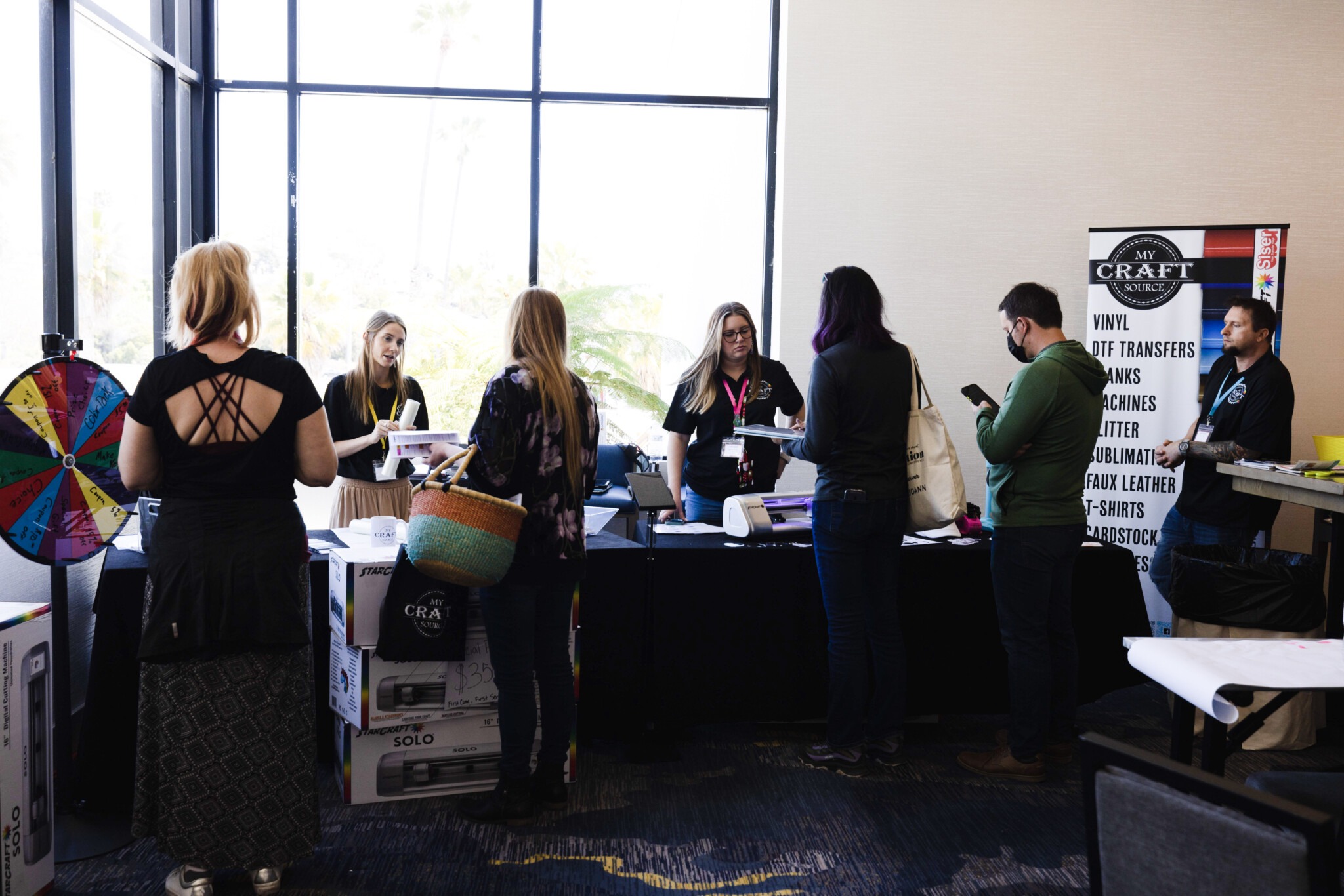 Attendees had the opportunity to get to know our sponsors Spoonflower, Walnut Hollow and Handprint, One Big Happy Yarn Co., Grant House Sewing Center featuring SVP Worldwide sewing machines, My Craft Source, Oliso and Replica Surfaces at their booths which featured giveaways, crafting, demos and more.