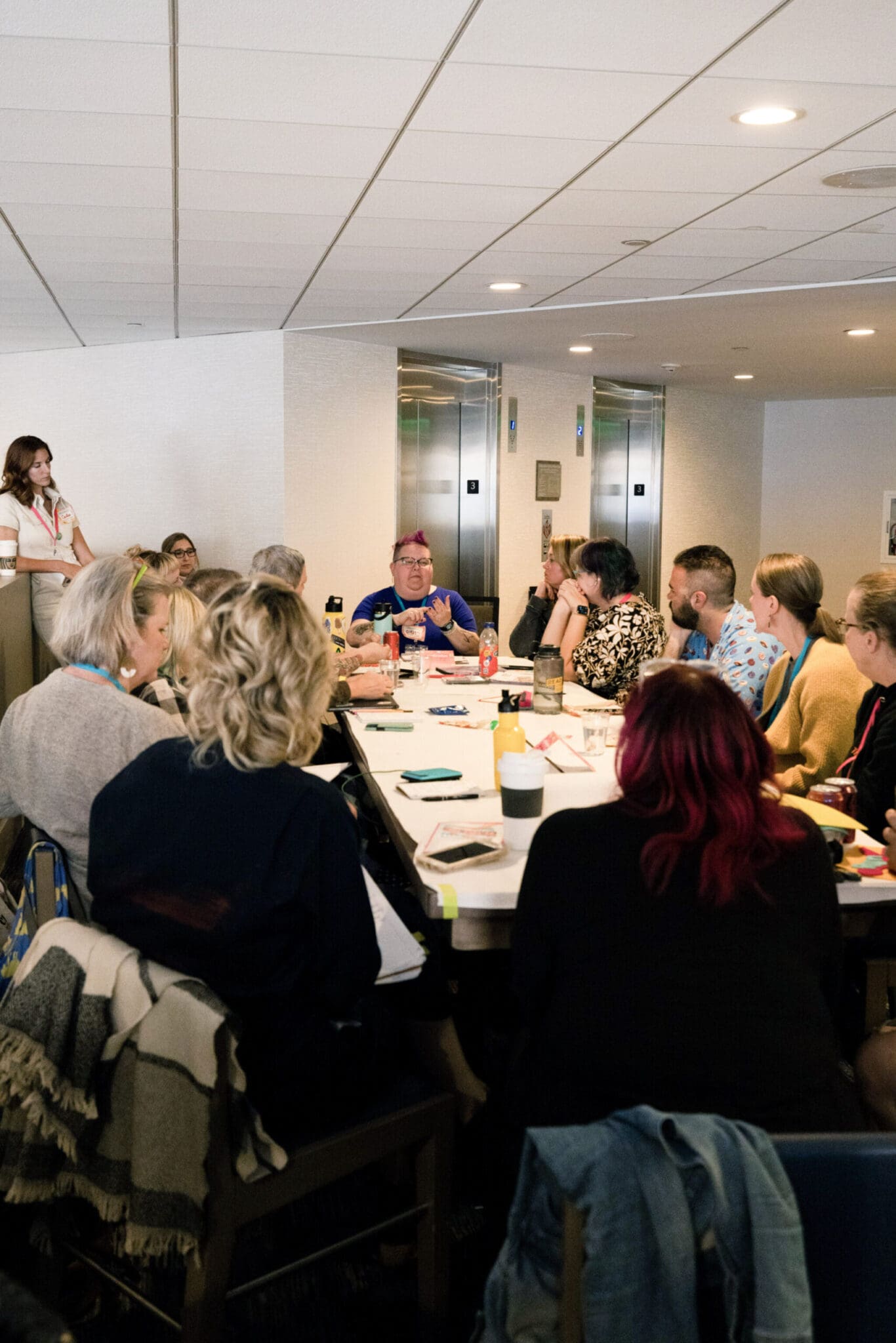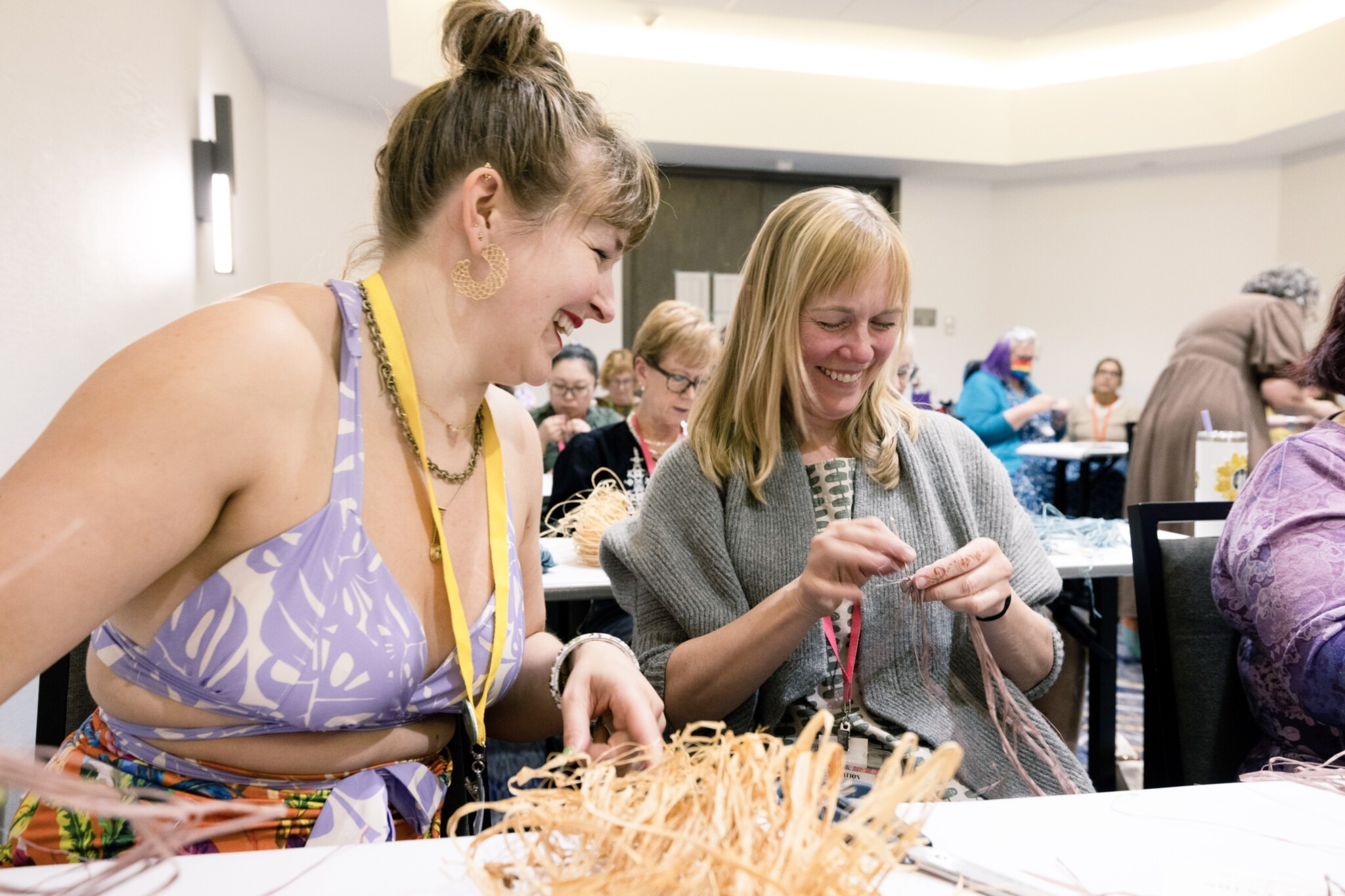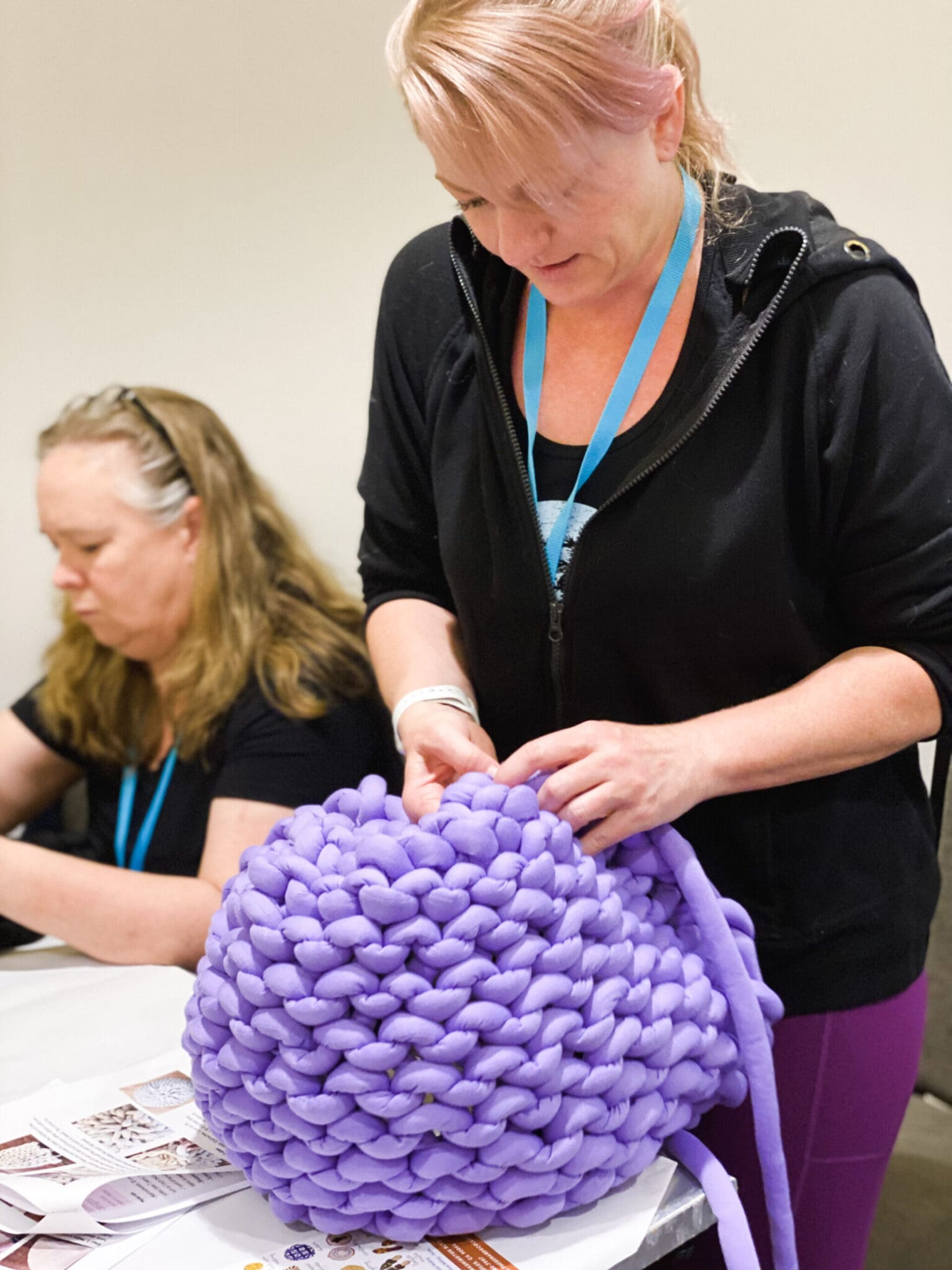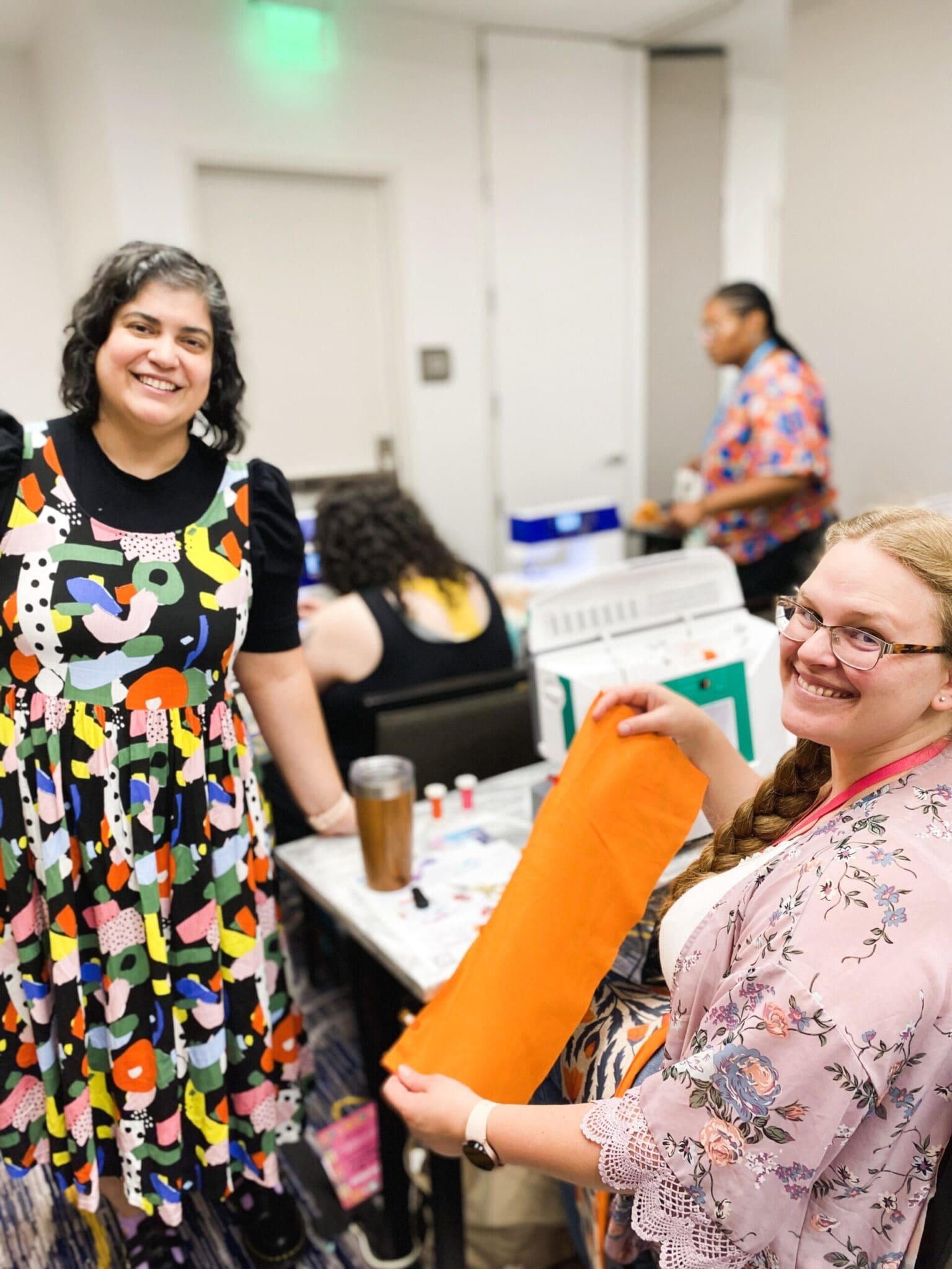 At that table with our team on the patio of the hotel on Sunday night, I asked everyone what their “Craftcation moment” was. I loved hearing about their experiences. For me, it was the moment I saw one of our youngest attendees, a 16-year-old queer kid MJ on our crew (who is equal parts hard worker and emotional resetter with their mid-day “can I give you a hug?” chats) walking arm-in-arm with our most senior attendee (the 91 ½ year-old embroidery business owner woman Bruna who inspired me, and I’m sure many others, to keep on keeping on). I can’t imagine a place aside from Craftcation where those two folks would not just meet but connect. That is a moment that no camera captured but that will be imprinted in my mind forever.