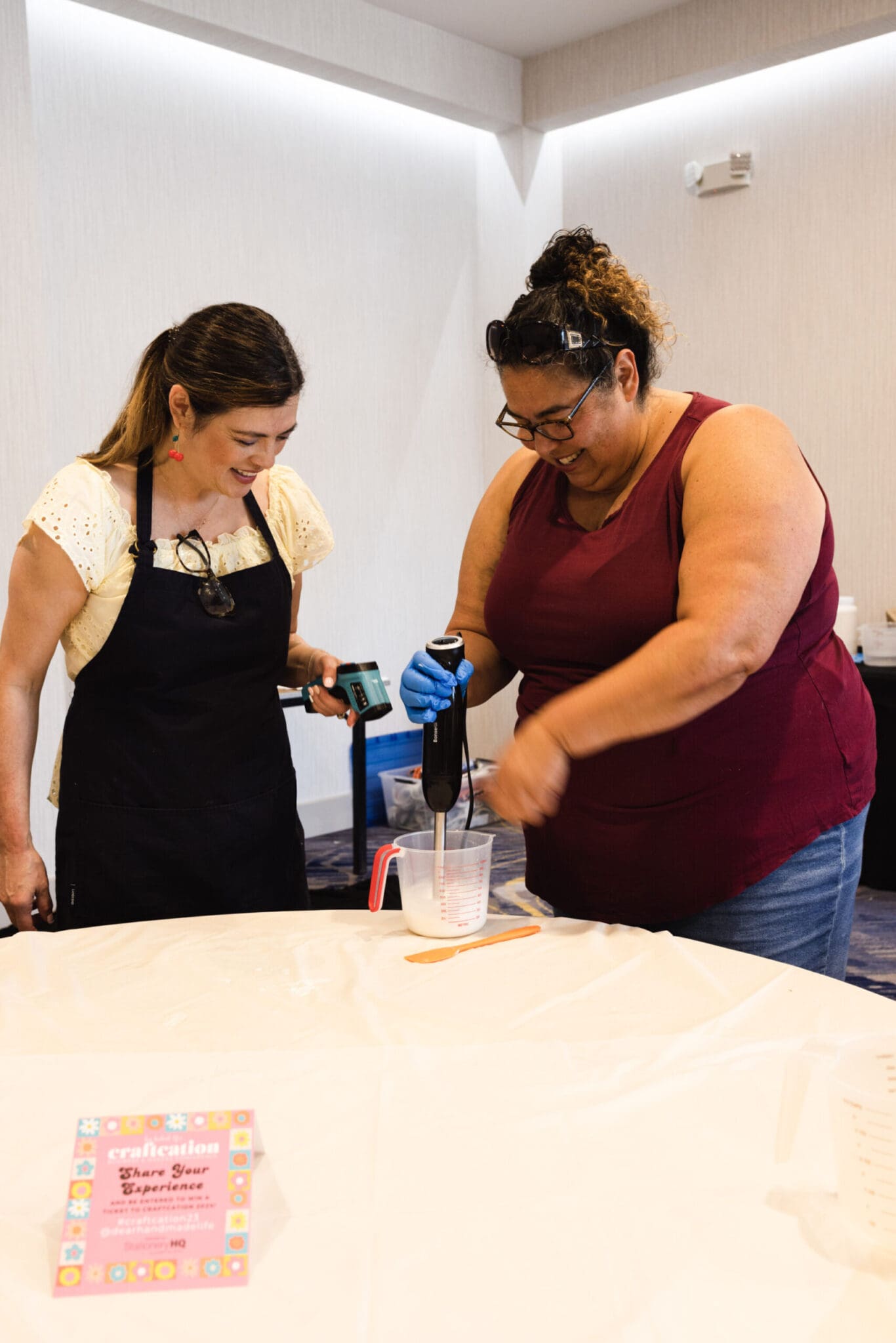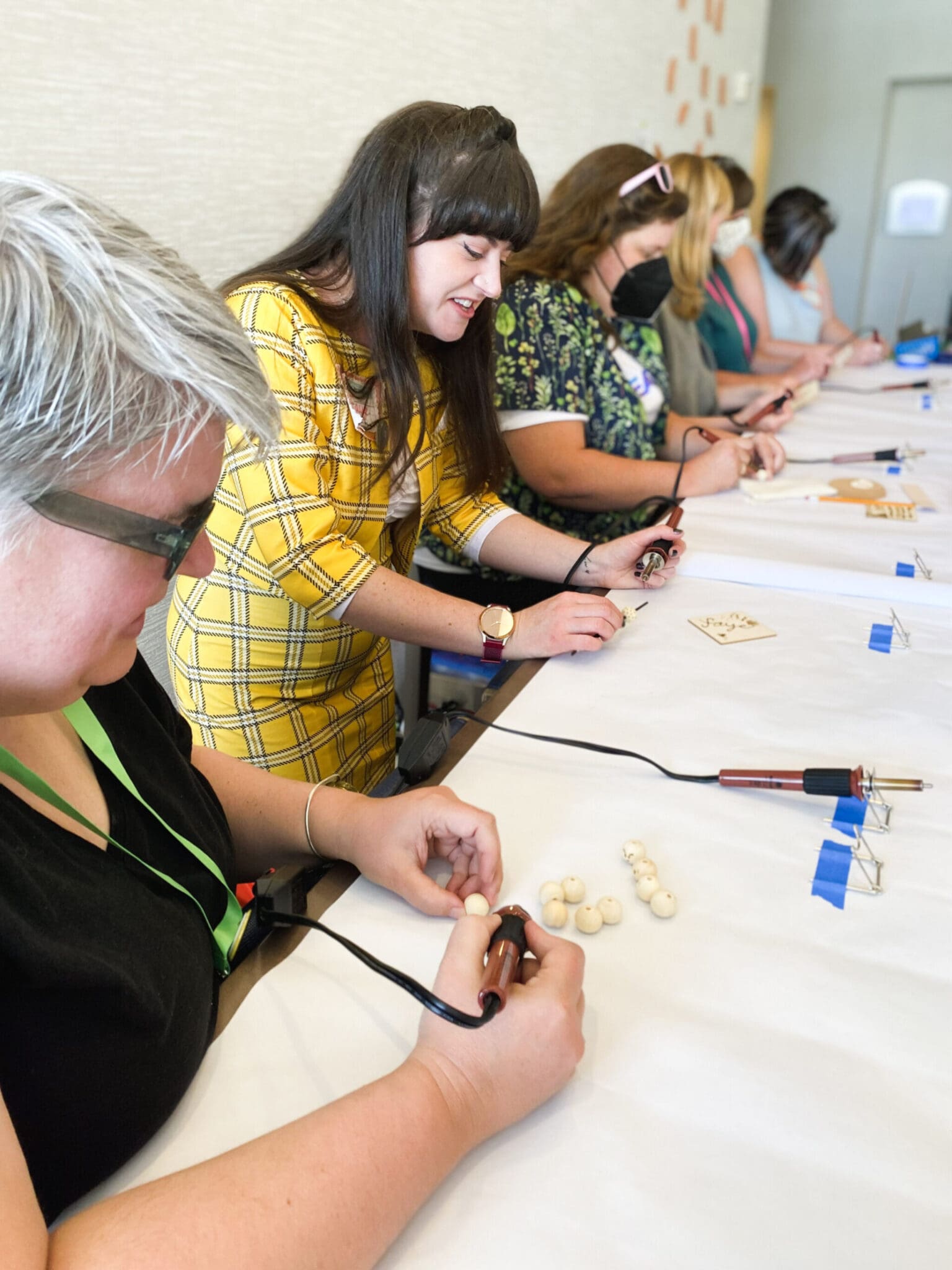 With over 100 craft classes to choose from, Craftcation attendees had the opportunity to explore almost every craft genre including sewing, wood burning, watercolors, resin, mixed media art, glass etching, apothecary crafting, needle arts, photography, printmaking and more. Thank you to our craft workshop sponsors Bramble Berry, Handprint, Walnut Hollow, Blue Buddha Boutique, JOANN, Bobbiny, Ganxxet, Inc., Clover, Jacquard Products, Pipsticks, RYOBI, Xuron Corporation, Holbein, My Craft Source, Replica Surfaces, and One Big Happy Yarn Co. for providing supplies plus to Nik V. and Katie Newman for managing this big and chaotic department so well and to my husband Seth for running errands throughout the week.