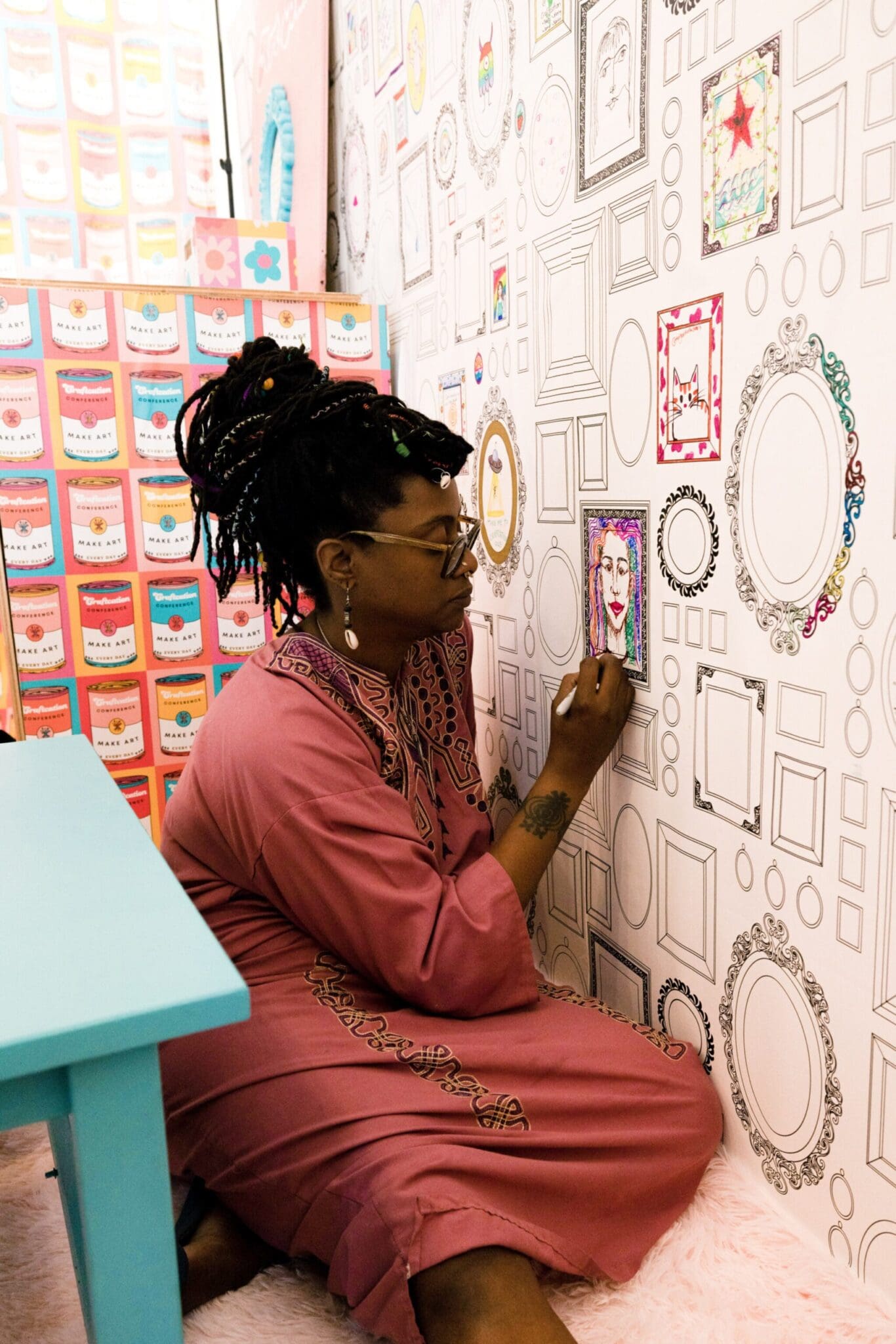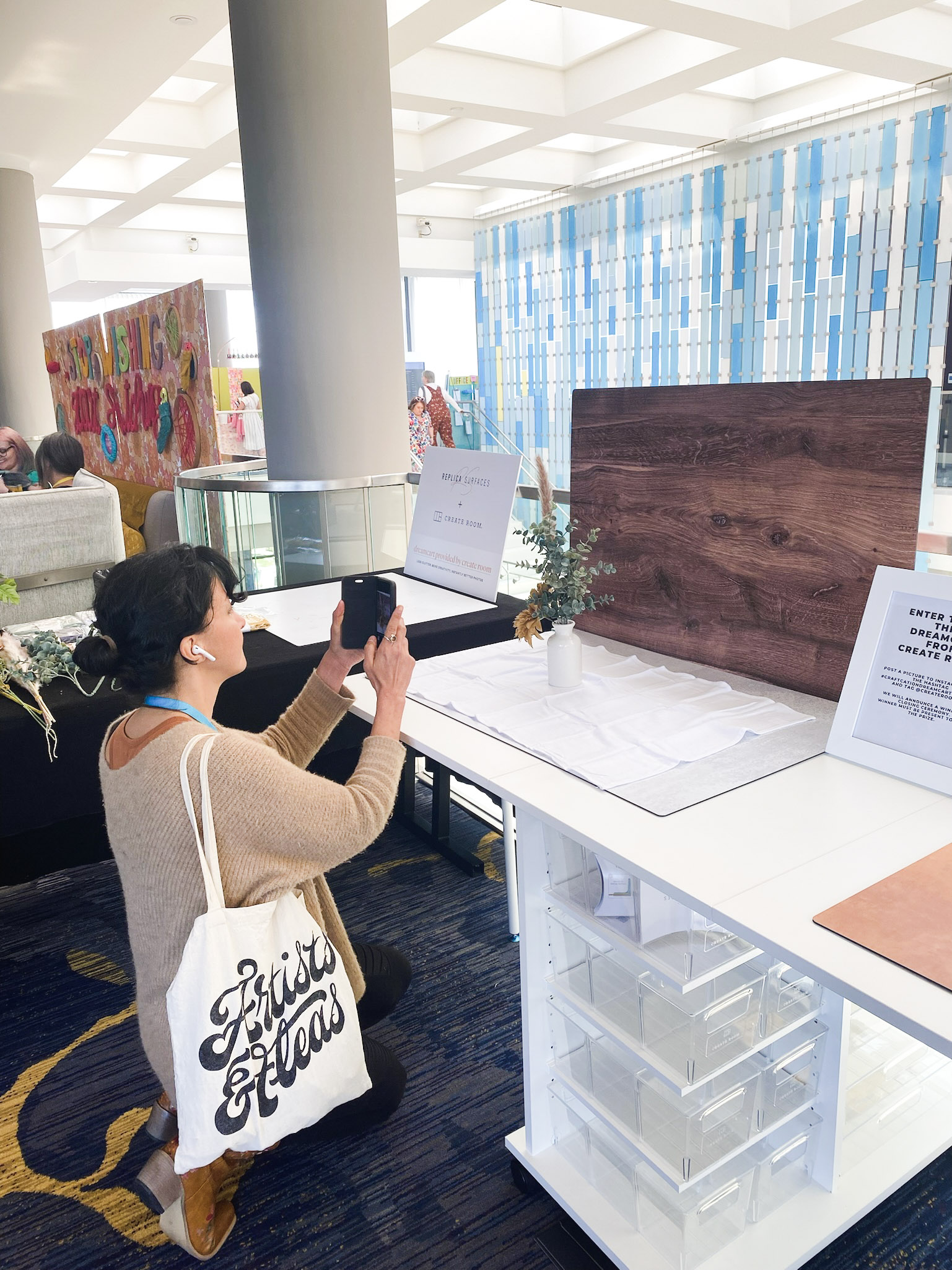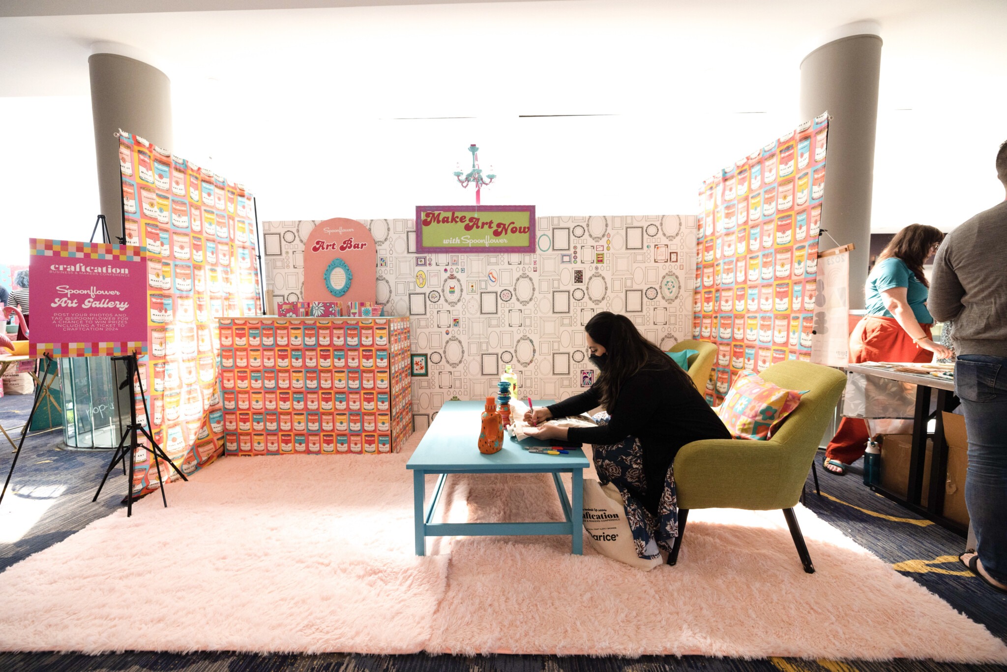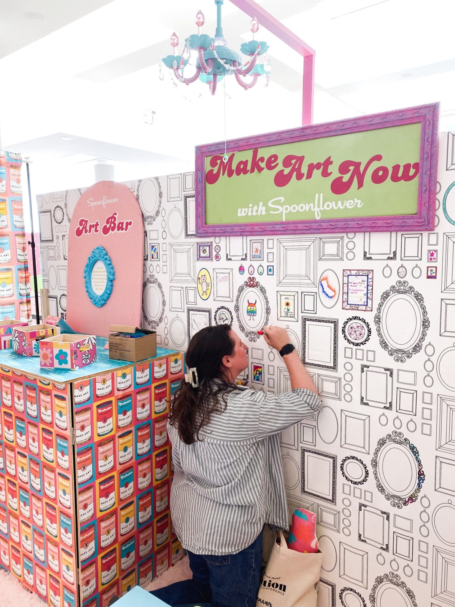 - The Spoonflower Art Gallery where attendees created their own art in blank frames on the wall featuring Spoonflower peel and stick wallpaper.