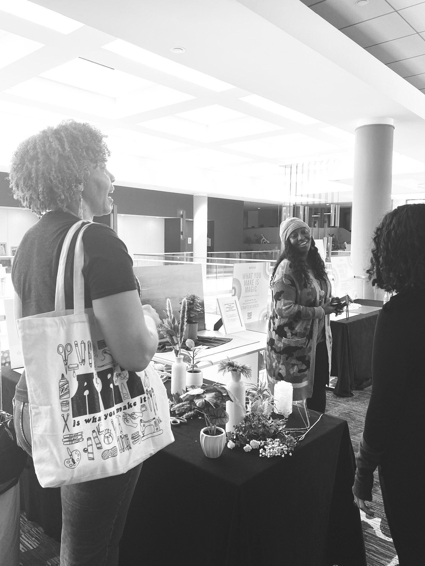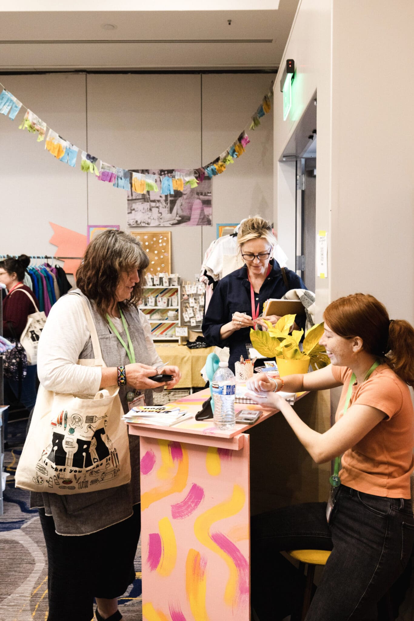 This year, we reimagined the pop-up shop by moving it in a bigger space so that we could offer more creatives a spot. We invited attendees and presenters to apply to be featured in it and it was a huge success! Thanks to Briana our pop-up manager, Kai and Morgan who were outstanding crew members, KatieMac who made inventory and sales digital and the awesome crew who merchandised everything.