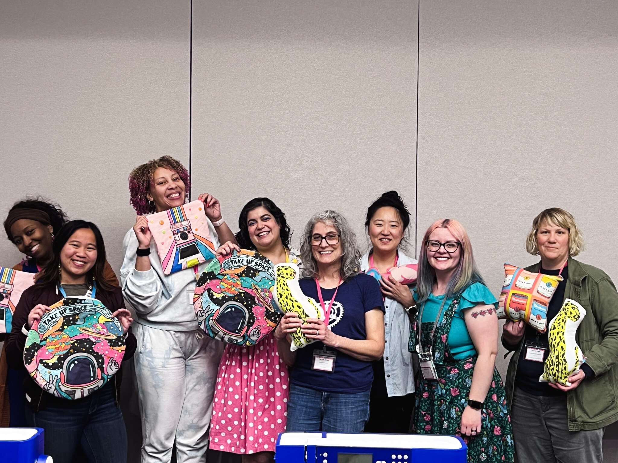 We also crowned a new champion at our Iron Craft Ventura competition (congrats to Jenny!) and thanks to our hosts Holly Marsh and Emily Benson (they were amazing!).. Thanks to JOANN for sponsoring Iron Craft this year and to Clover, Narrative Hues, Holbein, Oliso, Replica Surfaces and StationeryHQ.com, Handprint, Walnut Hollow, and Create Room for providing prizes for Iron Craft and our closing ceremony. After Iron Craft we jumped right into a space-themed karaoke party hosted by Mallory Whitfield.