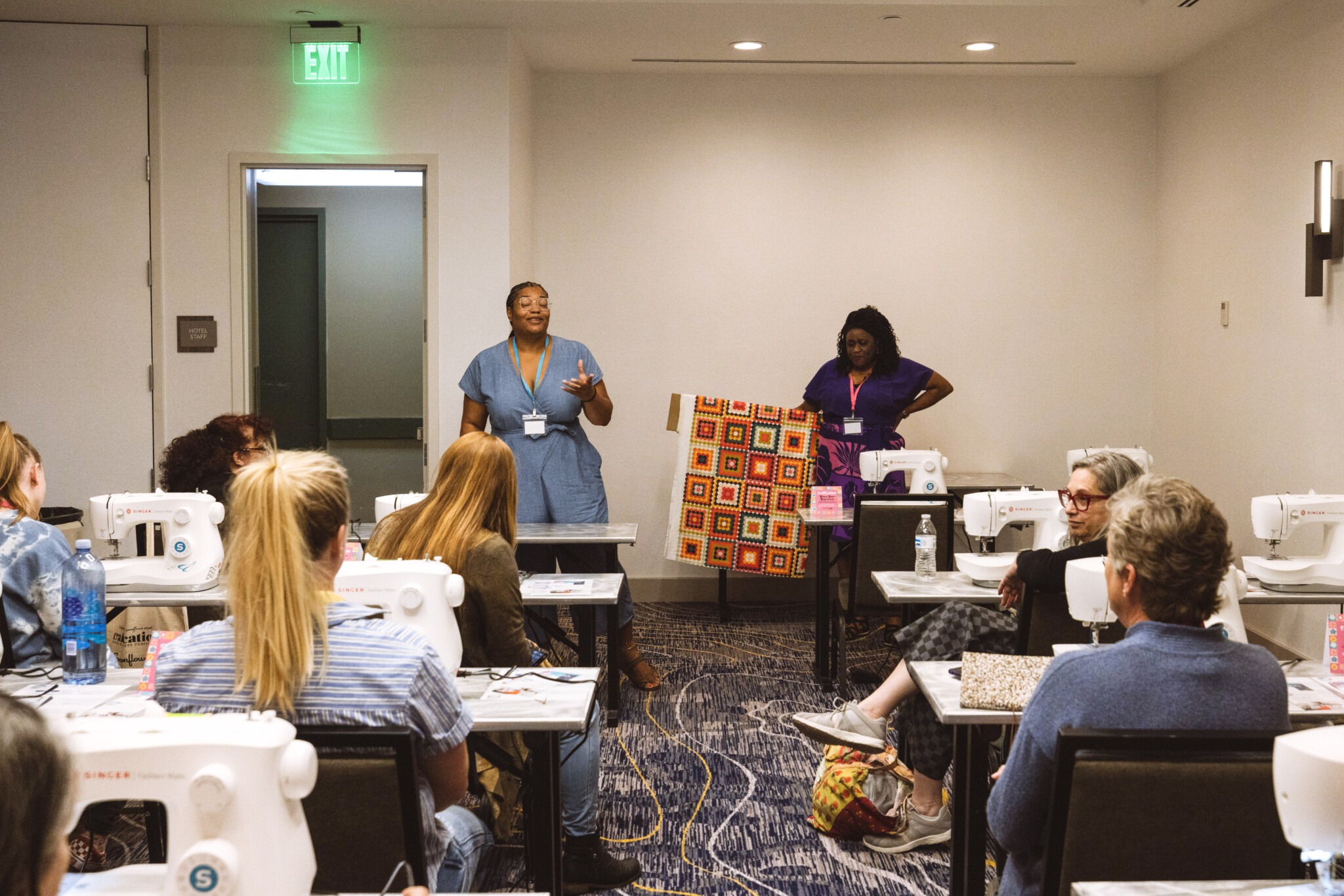 For the 2nd year, we had three different sewing brands (each highlighted in their own room) in our Sewing Annex. We were proud to welcome SVP Worldwide and their brands Pfaff, Husqvarna Viking, Singer as well as local dealer Grant House Sewing Center. Attendees also experienced a lux ironing thanks to our iron sponsor Oliso. Our Spoonflower Fabric wall offered attendees the opportunity to choose from a wide variety of fabrics all designed by independent artists for their projects. We’d love to give a special thank you to JOANN for sponsoring Monica Tetteh’s sewing classes and to Monica for teaching extra sewing classes to make sure as many attendees as possible got to sew.