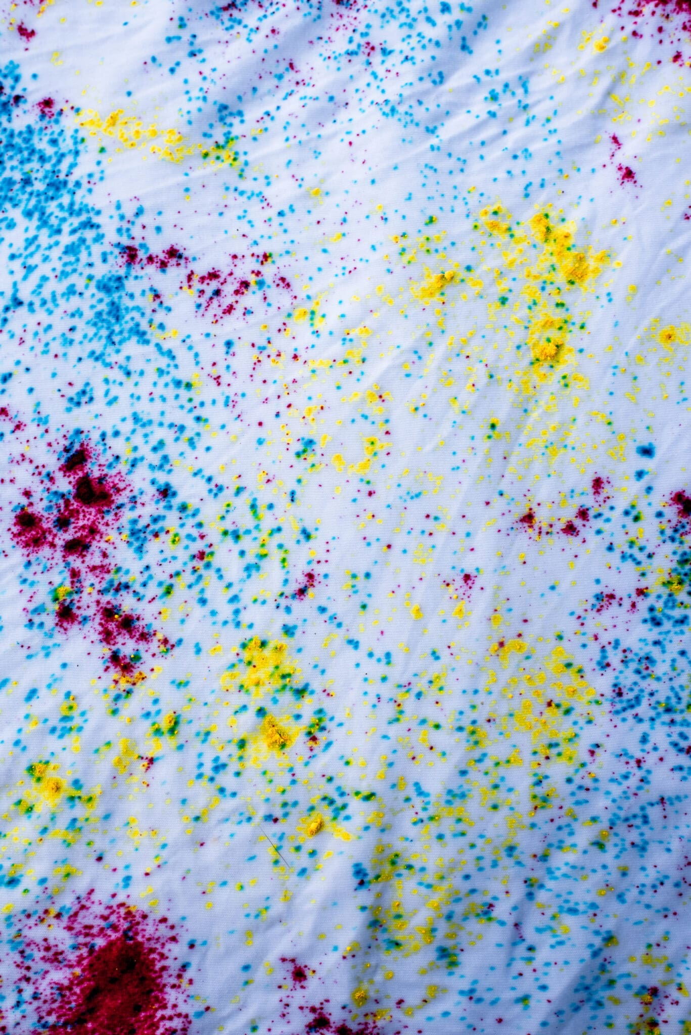 We all know about the great comeback of tie dye in 2020, right? Well, I’ve been super into ice dyeing for a few years now and personally I prefer the organic look of ice dye over classic tie-dye. BUT… I’ve experimented a bit on how I could achieve an even more unique hand dyed look and I wanted to share this technique with you! This is more of a confetti style, you still have to give up quite a bit of control but I really like the results of this technique.