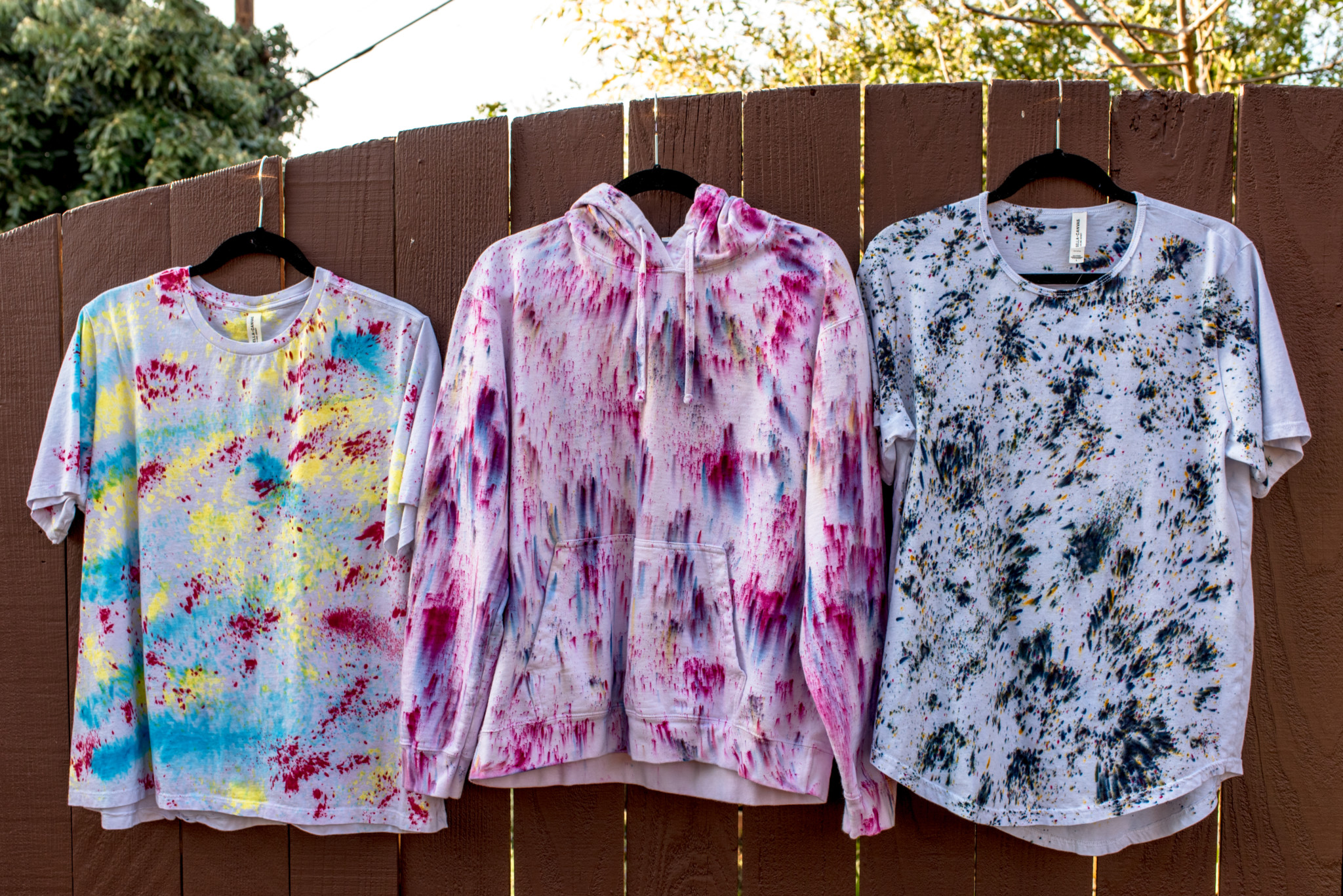 - When you are choosing the dyes you want to use here, note that if you choose a primary color, like yellow, you probably won’t get any variation in the color of that dye. However if you choose a color in the gray family, these colors are comprised of many different colors to make that specific color gray. Meaning with this technique, you will get a variety of colors that show up on your clothing item, even if you are just using 1 gray. It might sound a little science-y and confusing but once you see photos of the process I think it will make a bit more sense!