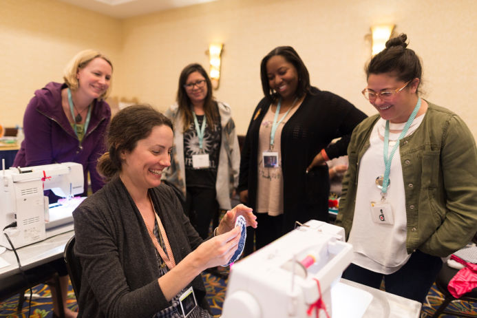 There were also so many other moving moments that I experienced first-hand at Craftcation. Seeing our moms, aunts and their friends jump in and work their fannies off when we were in a pinch, hanging out with our staff and volunteers who work as hard as Delilah and I do, having a rare moment to sit in on during a class and be part of an honest conversation about balancing what we think we should do with what we actually need/want to do, working the registration table and greeting first-time attendees or alumni with a hug or a heartfelt “welcome” (pretty much EVERY moment at registration as I see attendees walk-in, my heart is more full of joy and gratitude than it is any other time of the year), seeing so many amazing craft projects, slipping into one of the business panels and hearing one of the panelists share her journey from being on food stamps to being a CEO and almost every night sitting with Delilah and talking (something we rarely get to do in person). Those are just a few of my best Craftcation moments (if I listed them all, this would be a book, not a blog post).