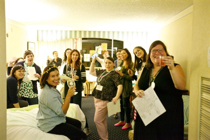 Our blue bayou themed opening dinner featured southern cuisine and drinks, A Plinko game where attendees won fabric from Michael Miller Fabrics (our official fabric sponsor), a DIY headband table with tons of awesome supplies from Darice led by Chelsey Andrews of The Paper Mama, a name badge decorating station from aftcra, a kombucha cocktail making/tasting area with Storey Publishing, live music from Alicia Murphy and a super inspiring keynote address from Emily McDowell.