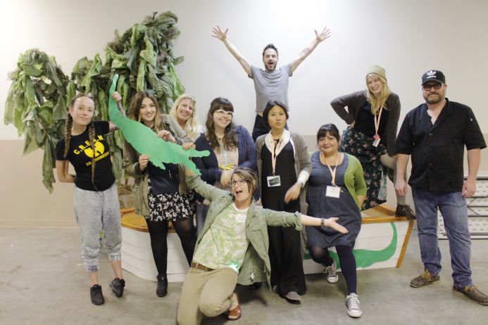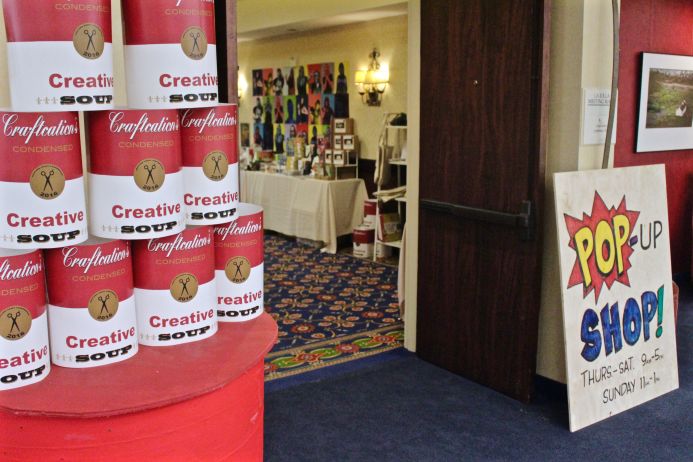 The theme for our pop-up shop which featured books, supplies and goods from our presenters, attendees and sponsors was Pop Art. The amazing decor Delilah planned included hanging Popsicle’s made of sponges (BIG thanks to Amanda who not only made these but most of the dinner decor), paper soup cans and my favorite part: a mural of pop art style staff portraits that LP Hastings created.