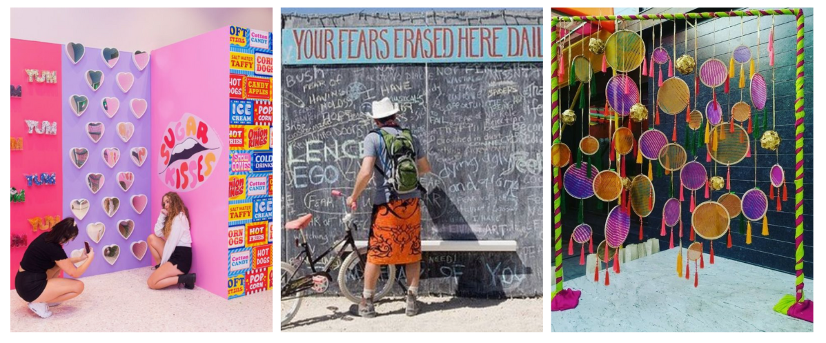 - DO NO DAMAGE, MAKE NO MESS: In the spirit of being mindful guests, art pieces and their install process should follow “leave no trace” principles. This means refraining from putting holes in walls or otherwise damaging hotel property as well as avoiding any materials that might make a mess (we’re looking at you, glitter!). Some damage-free options include magnetic hooks, free-standing photo backdrop frames, and painters tape. Unfortunately command hooks are not allowed to be affixed to hotel property.