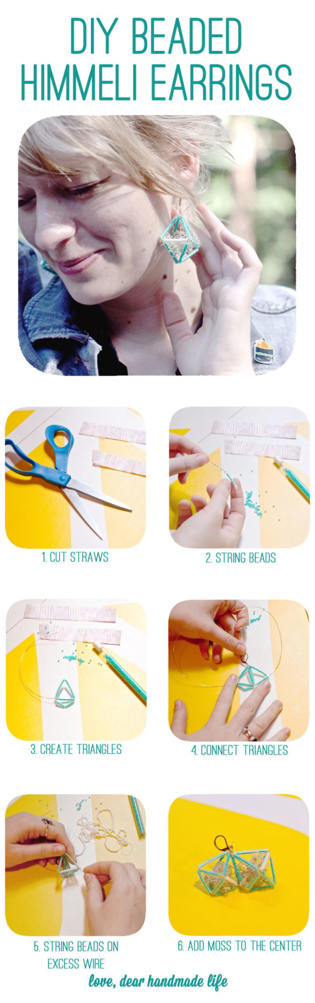 You can customize these earrings using a different color of wire or beads and I think they would make fantastic gifts. I guarantee you, no one has a pair. Plus, himmeli is really easy…like a child could do it easy. Once you get down the order of attaching straws I encourage you to go crazy. You might end up using that whole box after all.