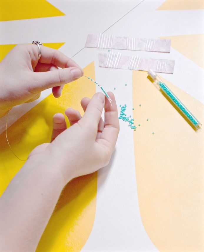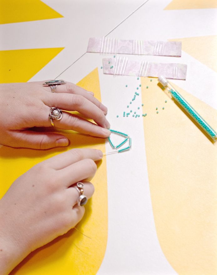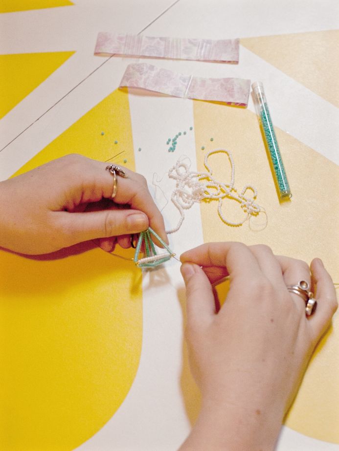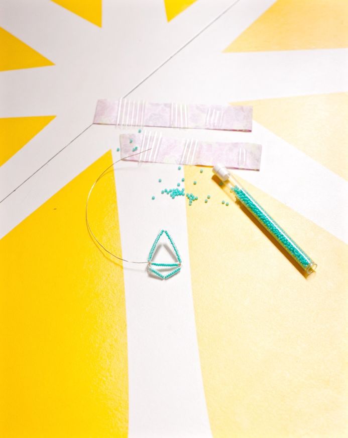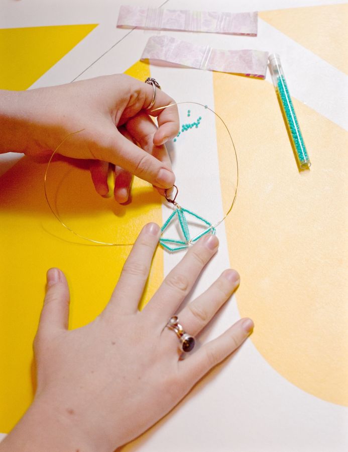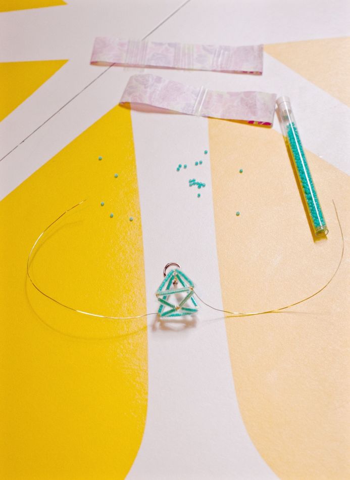 I fell in love with the himmeli necklace made by Minted Strawberry a few years ago, but I thought we ought to take advantage of working with the hollow tubes that define the craft. Beading seemed like the perfect way.