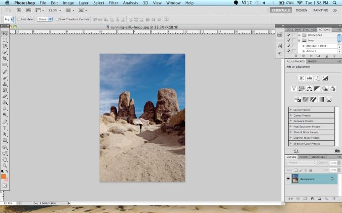 1. Resize the photo and make sure the DPI is 300. If you’re using a 3in hoop, resize the photo so that the shortest side (length or width) is 4in long. If you’re using a 4in hoop, resize so that the shortest side is 5in long. You just want to make sure there’s extra room around the photo once it’s in the hoop.