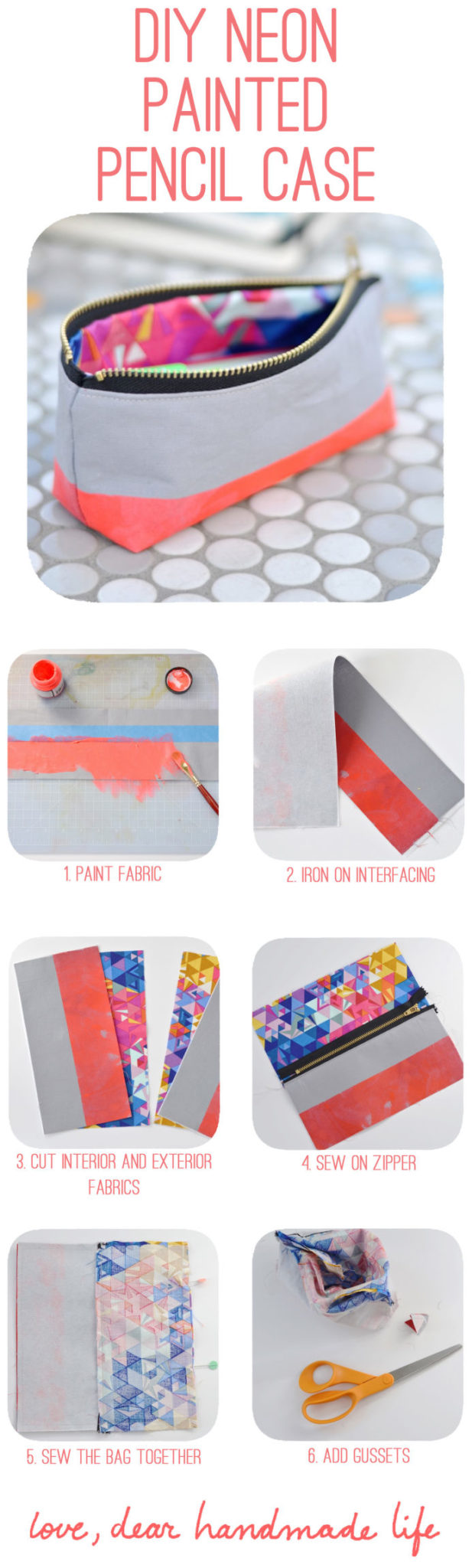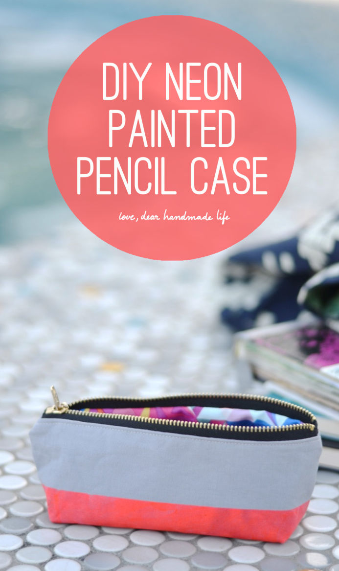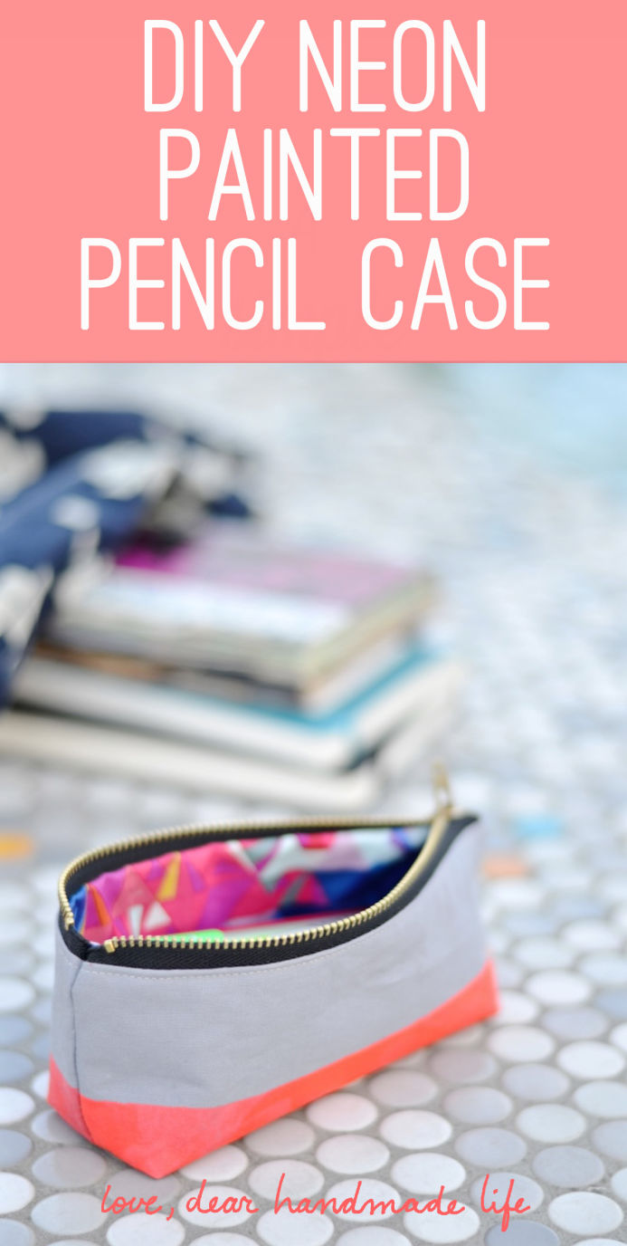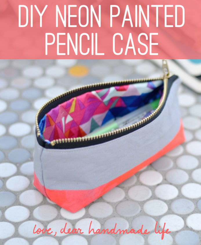 So, big surprise, I am also a huge fan of making pencil cases. And you know what? I bet you will be too. This one is super easy, and it is also a fabulous first zipper project. And the neon fabric paint? Well, that’s just the pièce de résistance.