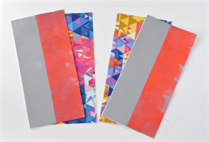 -Three 17 x 4 ¼ rectangles: one exterior light color solid, one interior bright geometric and one fusible interfacing