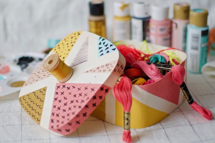 Hi there! Nik here from WastingThyme, do you ever get the feeling you are just drowning in craft supplies? For me it’s definitely embroidery floss, I think I have more that enough to last me a lifetime (or two) of embroidering. So I came up with a super cute & easy way to help keep some of my floss under control with this painted wooden box! Let me show you how it’s done.