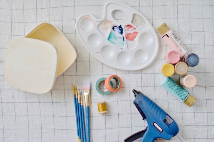 2. Assemble your paint on your palette then paint the box, you can use as many or as few colors as you’d like.Â