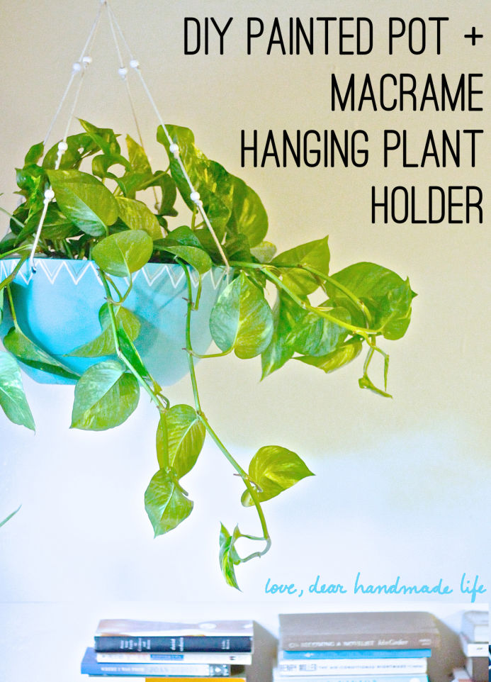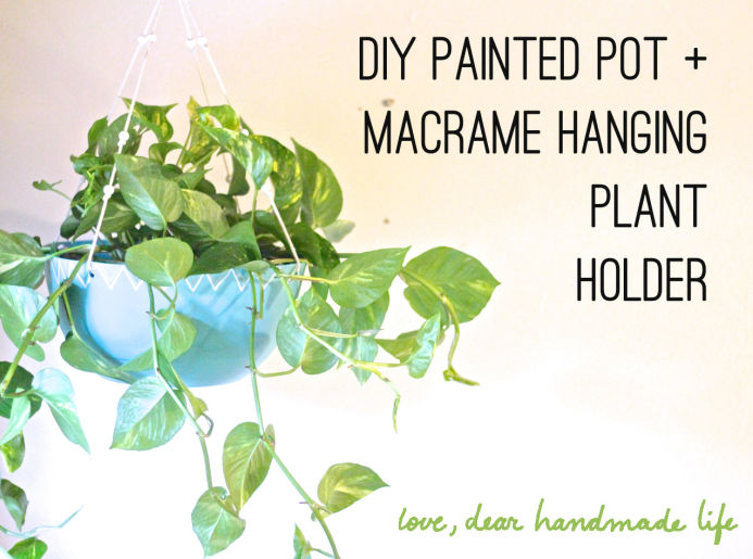 DIY Painted Pot + Macramé Hanging Plant Holder