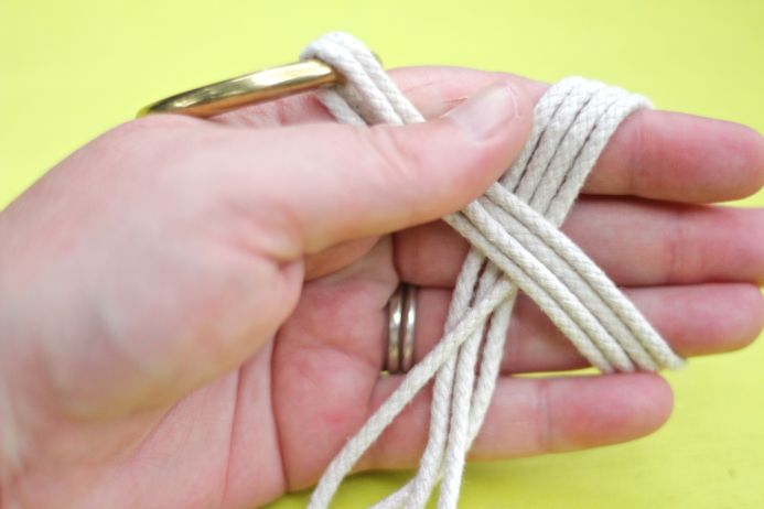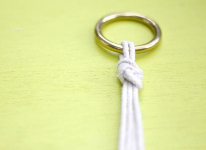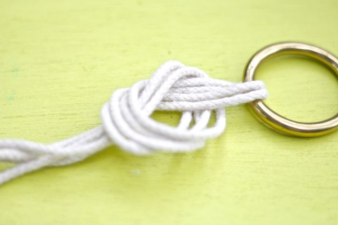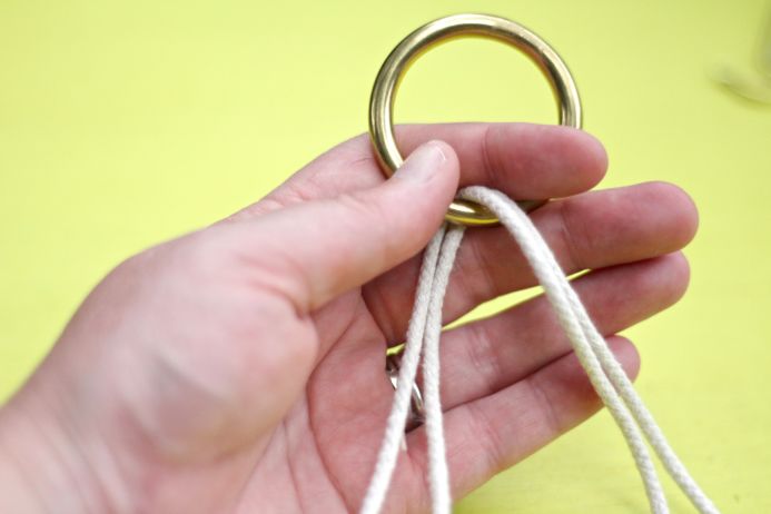 2. Thread both pieces of rope through the metal O-ring so that there are equal parts on each side of the ring.