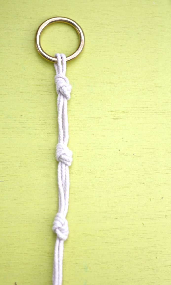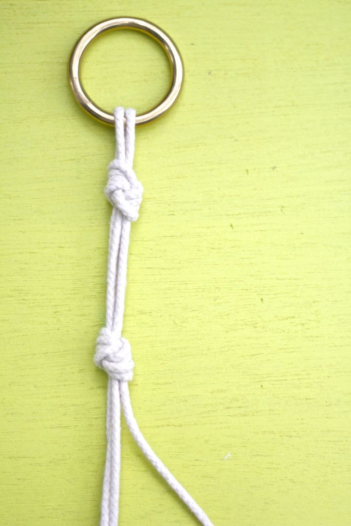 4. Tie another knot a few inches down. (If you want your plant to hang lower add another knot or two).