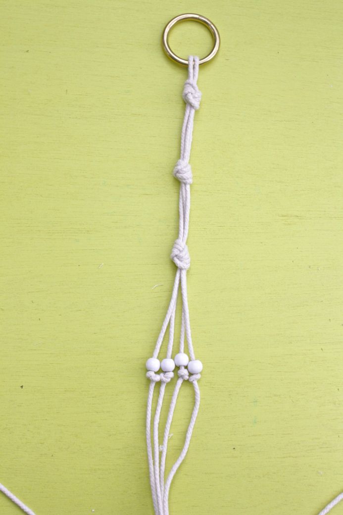 6. Repeat for the other three strands of rope coming off the center knot. (For mine holder I repeated this two more times. Repeat as desired depending on how long you want your holder to be.) *Take care to make sure your beads and knots all fall in the same place so your holder is even on all sides.