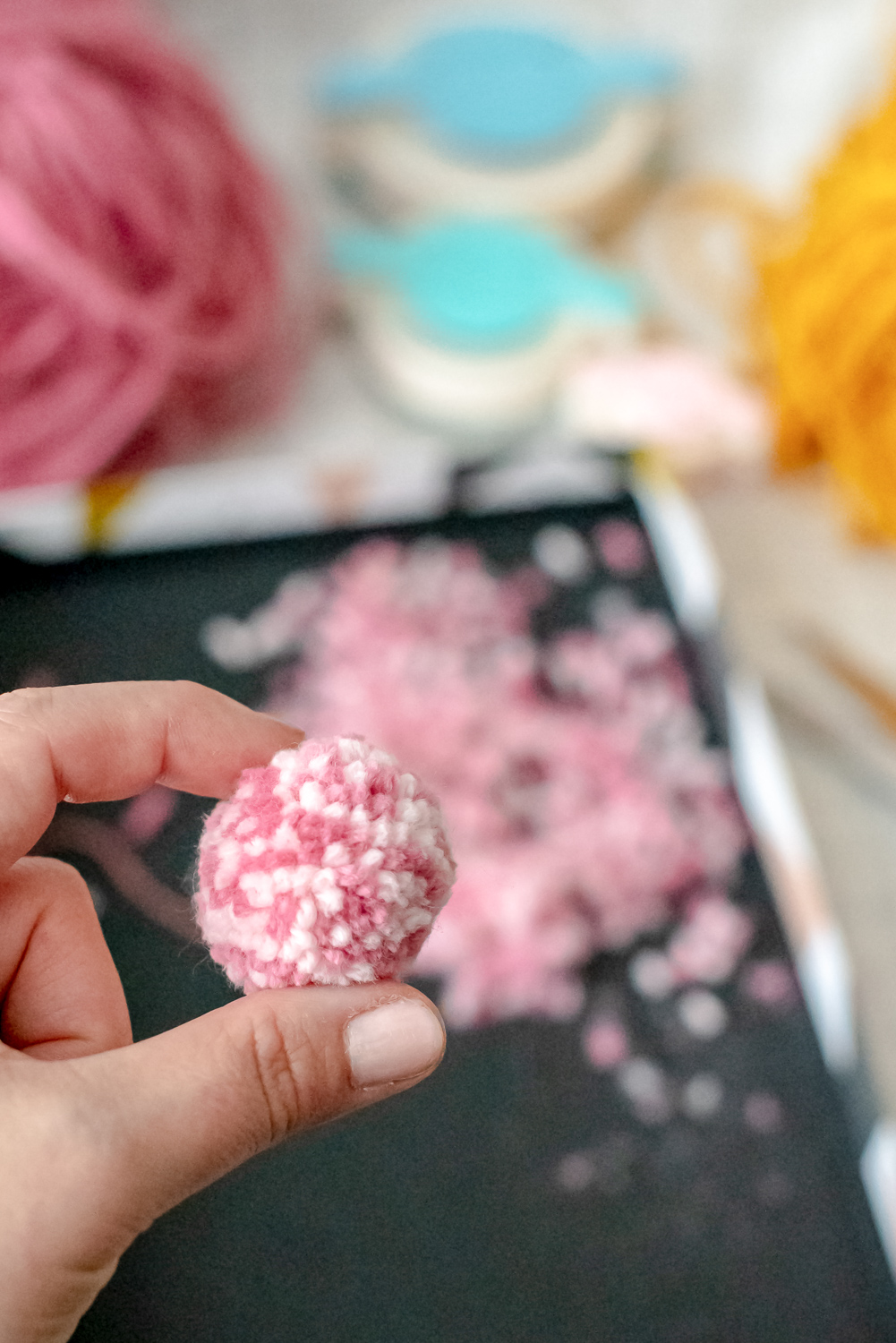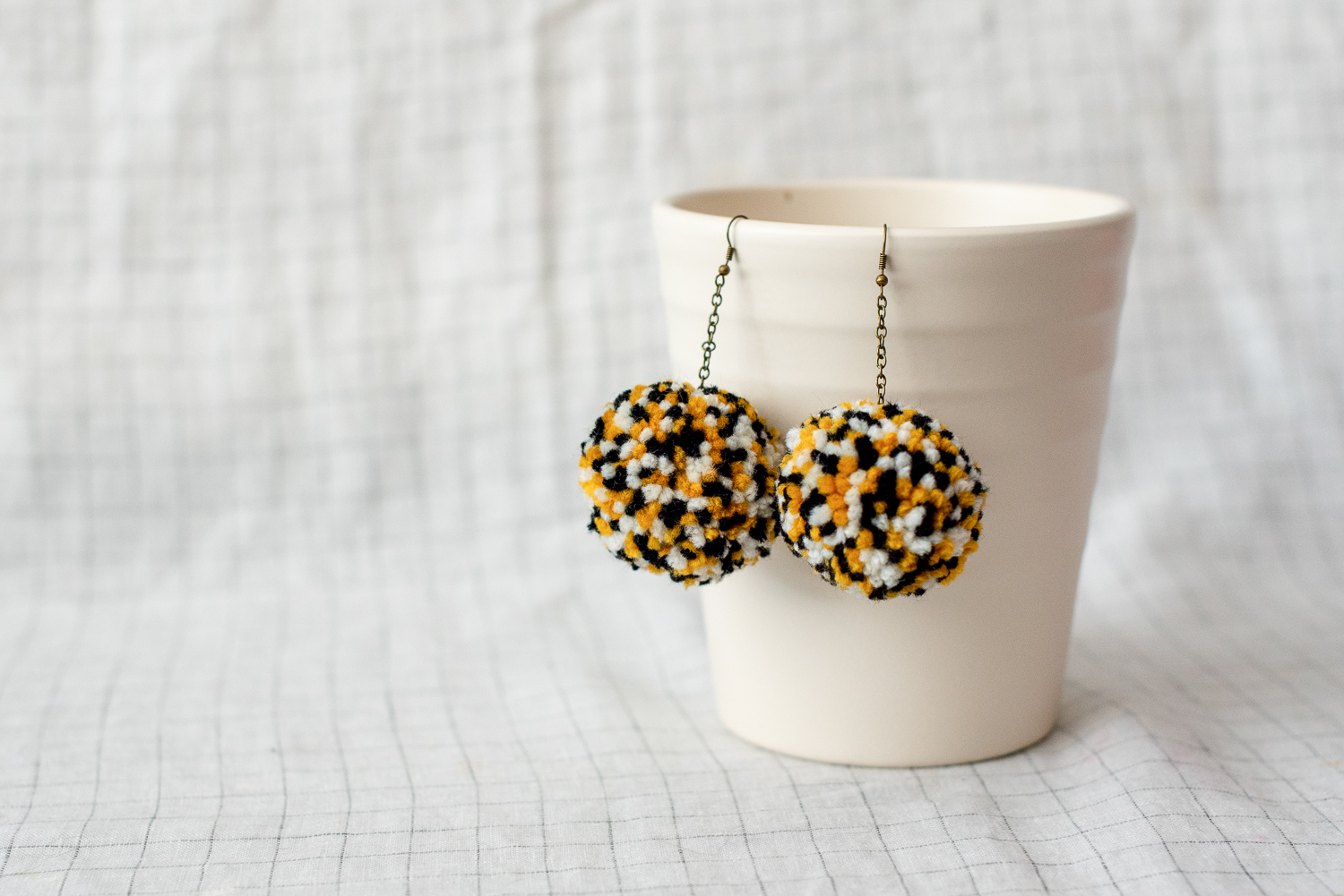 I also made another pair using a bigger pom pom maker and three different colors of yarn, the options are endless!