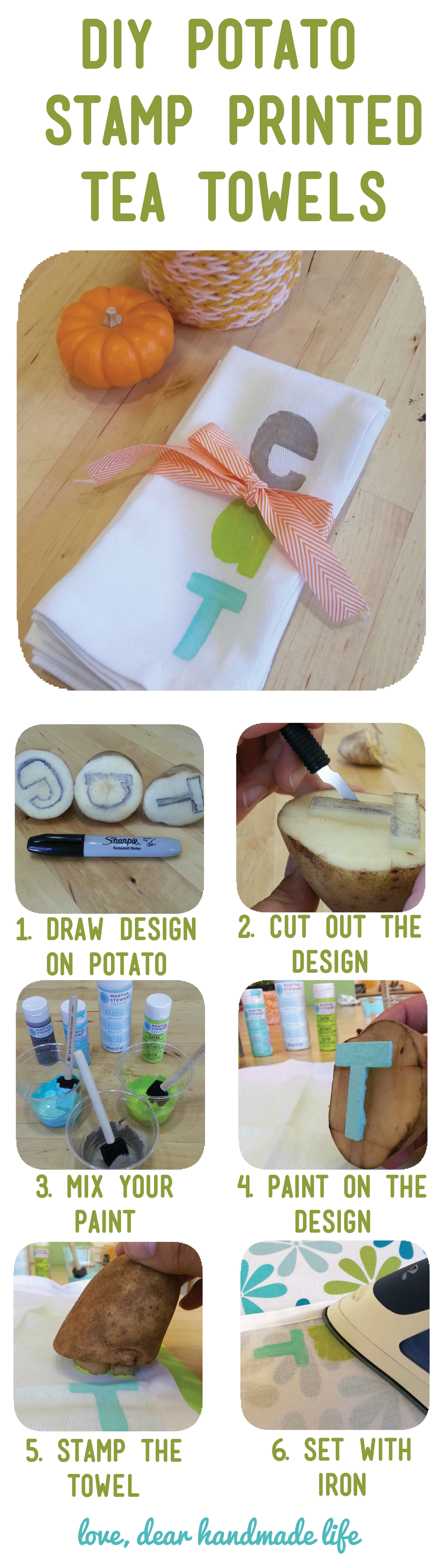 I was recently perusing the aisles of Target and happened across a set of simple, white cotton cloth napkins. Perfect for customizing and gifting! All you need is a few items (most of which you probably already have) and about an hour of your time and you’ve got DIY potato stamp printed tea towels (a super thoughtful hostess gift for all of your holiday dinners)!