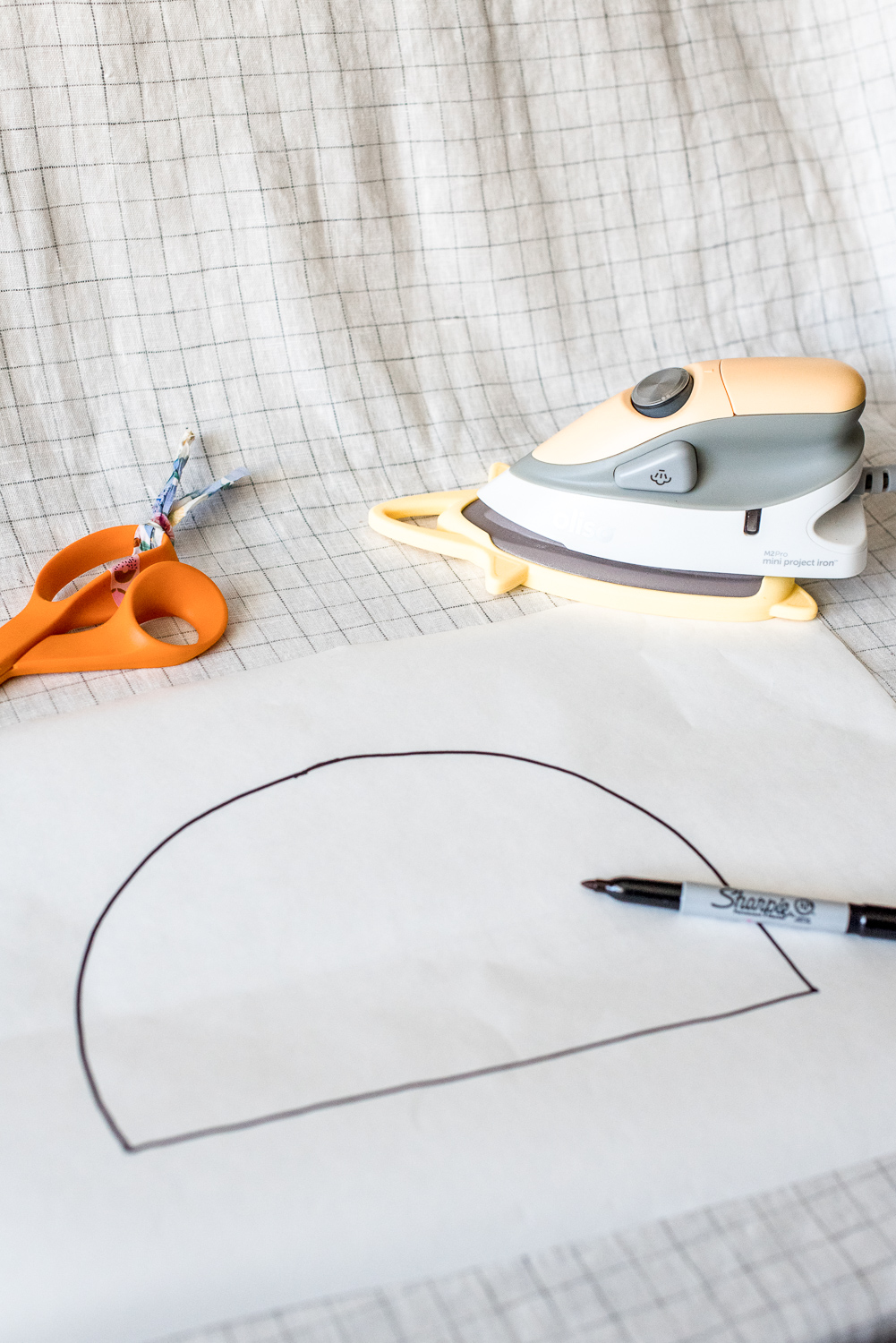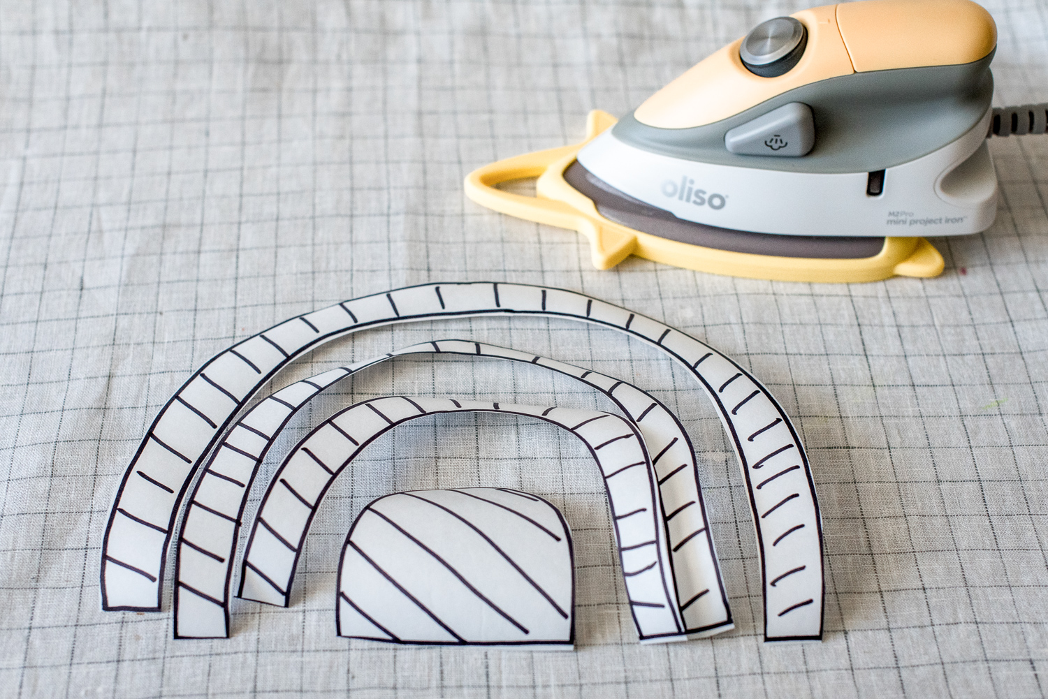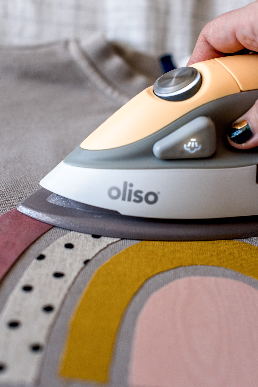 2. Place your pattern on the fabric of your choosing, wax side down, and iron over it with a warm iron until it sticks. I loved using my Oliso Mini Project Iron here, it was such a great size for this type of project! Once the pattern in secured to the fabric, cut it out and peel the pattern off, so easy right? Then I assembled my pieces to make sure I liked the layout before proceeding.