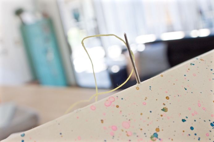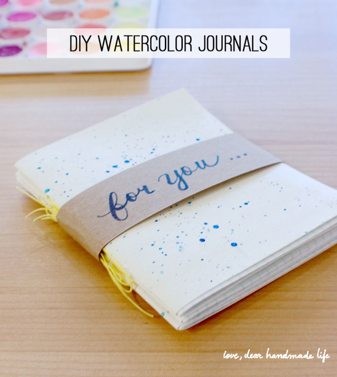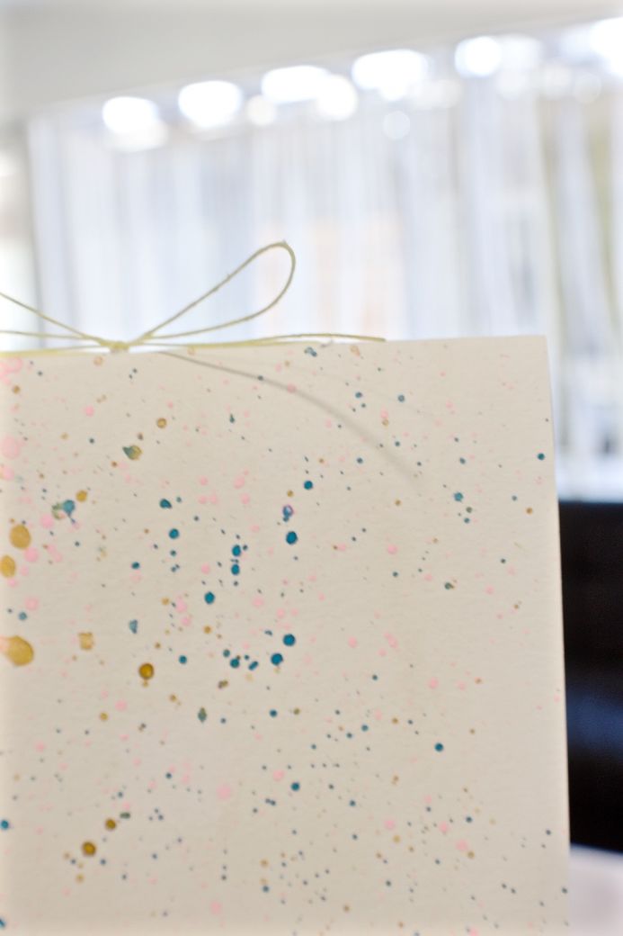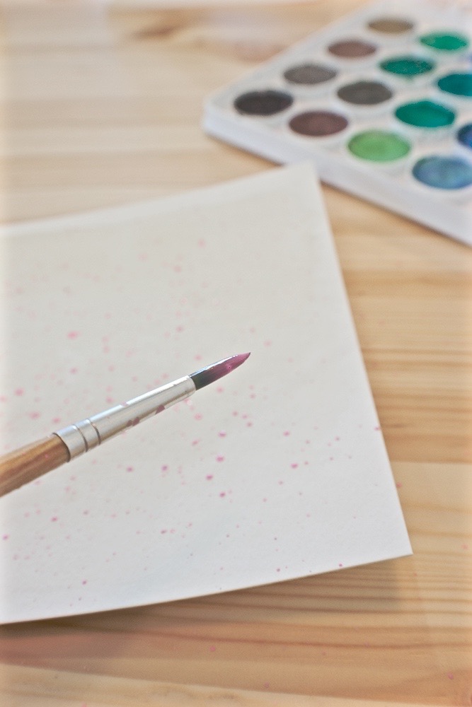 1. Start by painting a design on the watercolor paper. I painted a soft neutral color over the whole sheet and then splattered paint over the top by flicking the brush. Set aside to dry.
