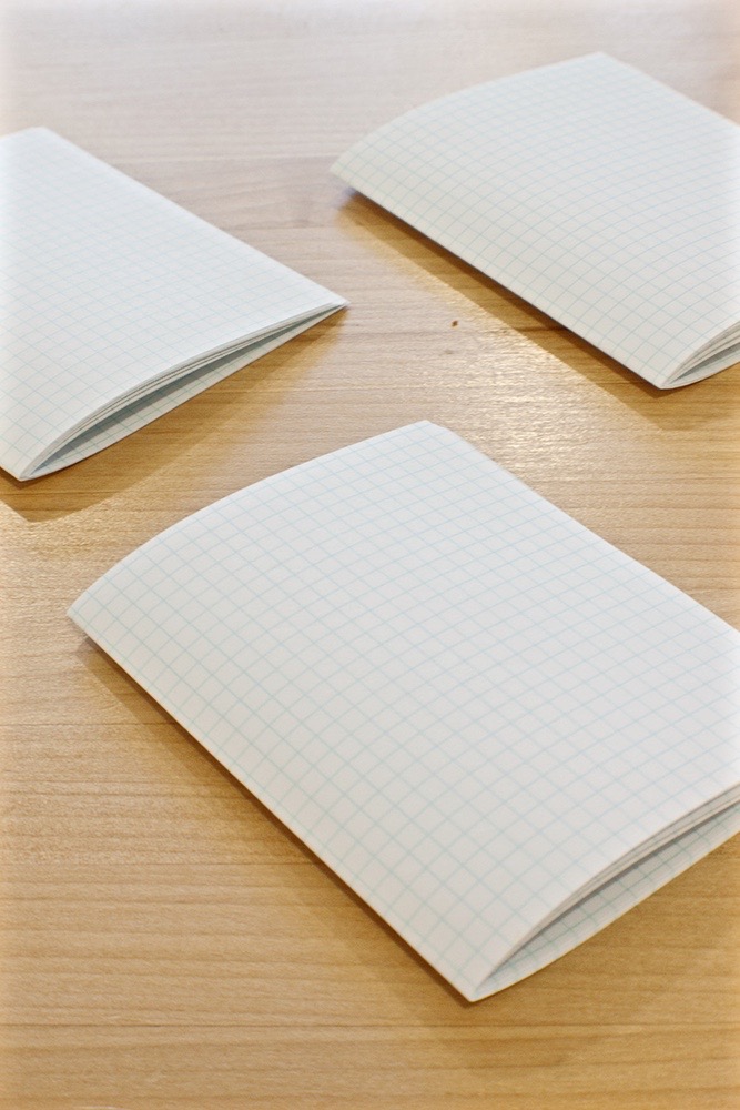 2. Fold 8 sheets of paper so that they measure 5.5” tall by 4.25” wide.