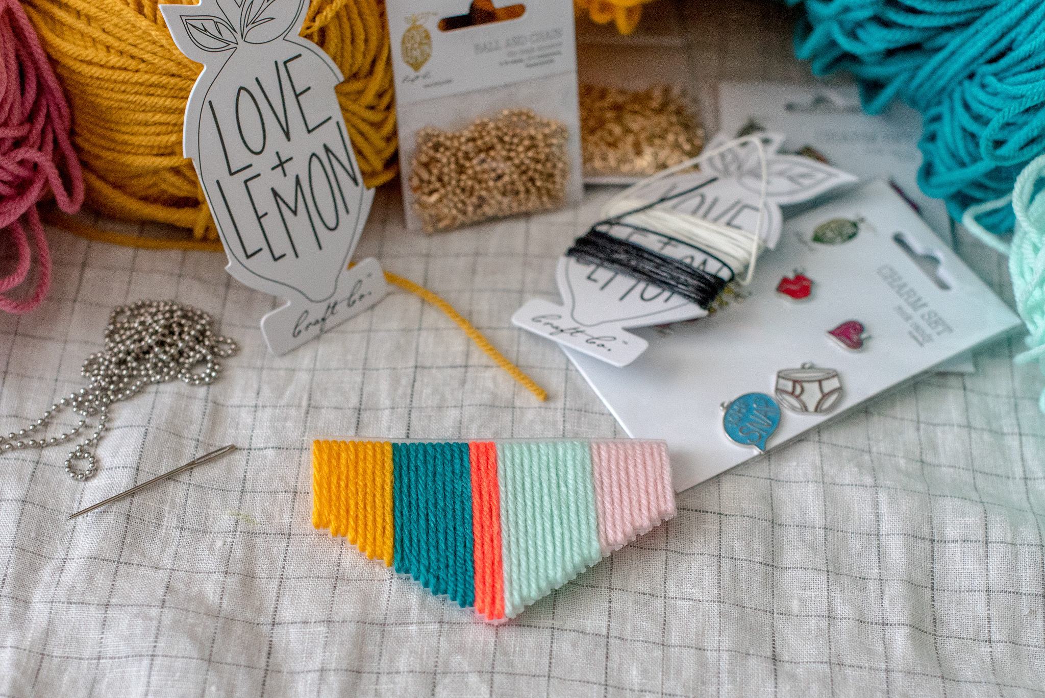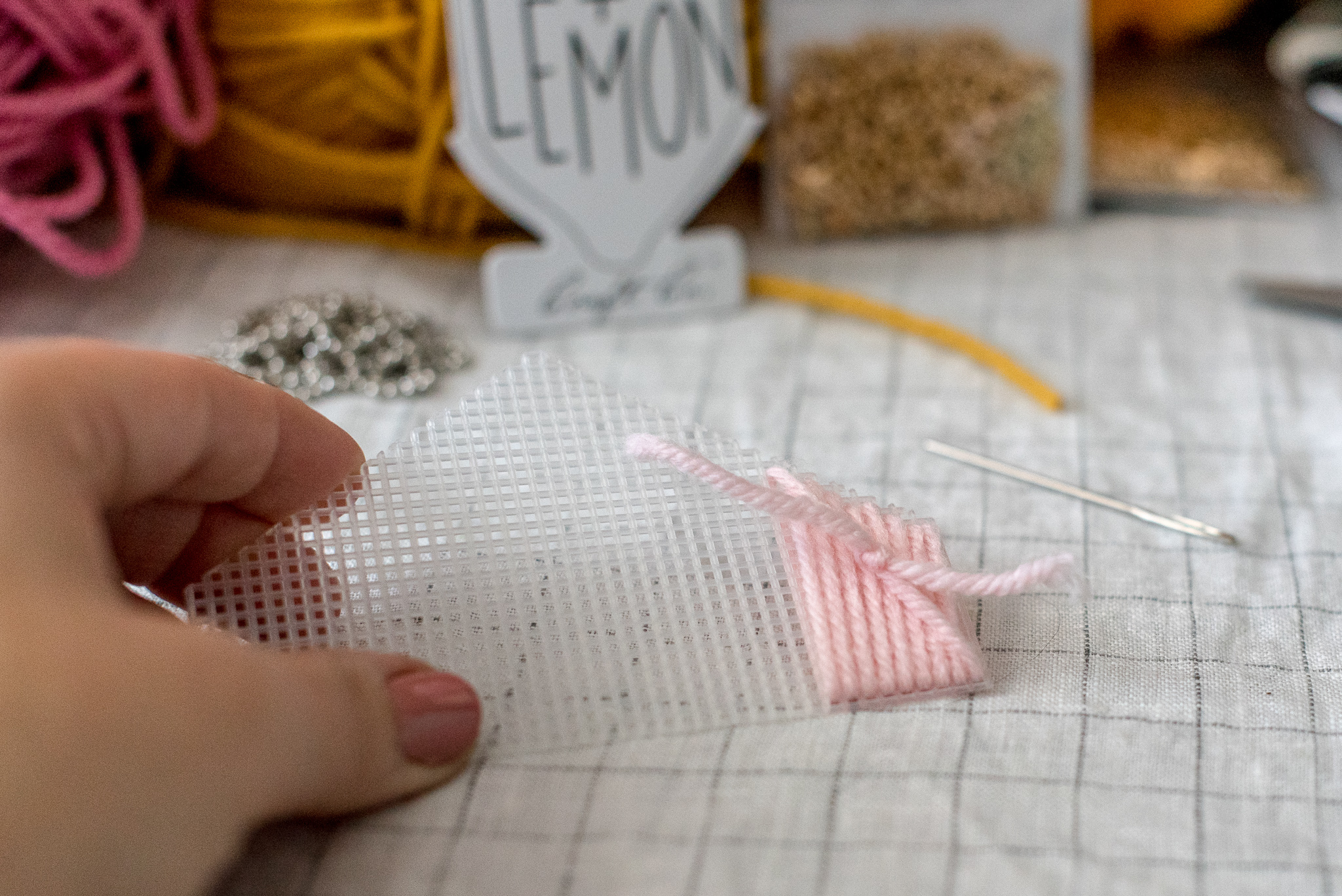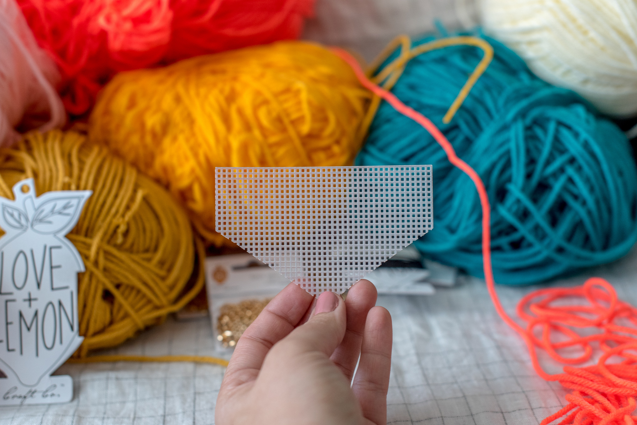 Editor’s Note: We welcomed new sponsors Fair Isle Yarn and Love + Lemon Craft Co. to our Craftcation Conference last year where we got to know their products and fell in love! We’re excited to share this tutorial highlighting a modern color palette from Fair Isle Yarn and fun yet classic jewelry findings from Love + Lemon Craft Co. as well as plastic canvas from our go-to website for craft supplies Darice. P.S. – We’re excited to welcome Darice back to Craftcation Conference as our official craft supply sponsor! We’re just about sold out, so if you’re thinking about joining us at Craftcation Conference for four unforgettable days of making, meeting and learning, now is the time! -Nicole S.