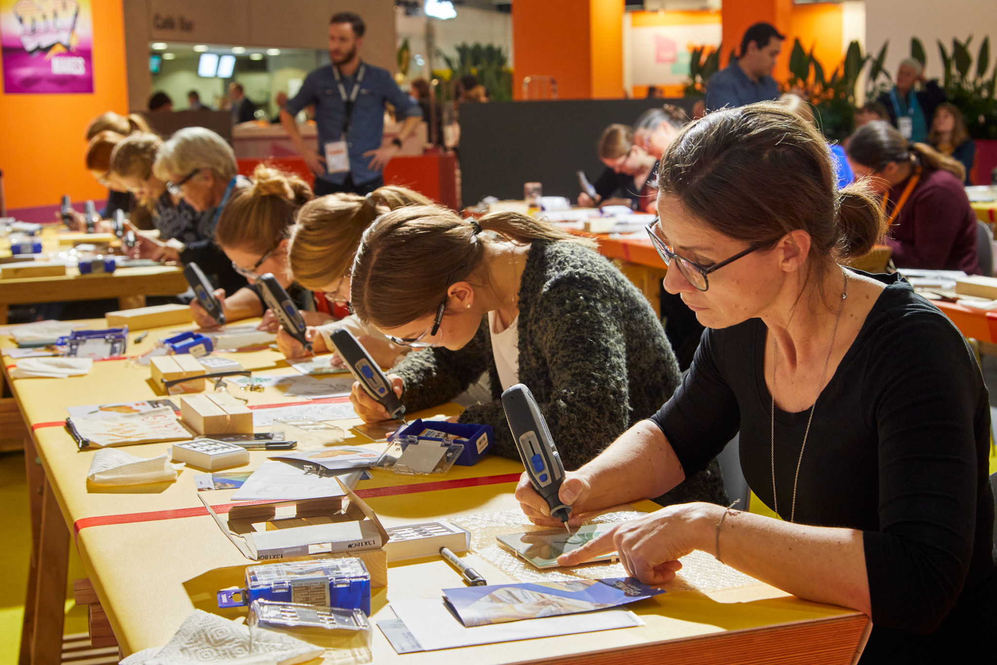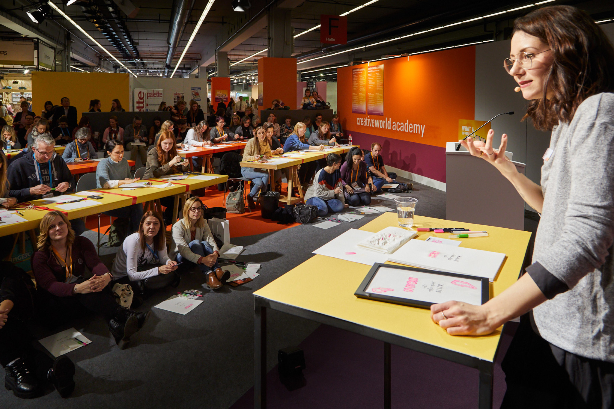 If you’ve never heard of CreativeWorld, it’s an international trade fair for everything hobby, craft, and art related. Hundreds of worldwide vendors set up amazing booths to demonstrate their tools and materials. Vendors and artists set up in thousands of square feet to display, demonstrate, and discuss their tools and products. Even some of our favorite vendors and Craftcation Conference sponsors present and past are there, too (like Jacquard and Sizzix). Many of these vendors do fun hands-on workshops that anyone can attend! There are also lectures and demonstrations by artists and business owners who discuss both new techniques for using materials and how best to stock them if you’re a business owner.