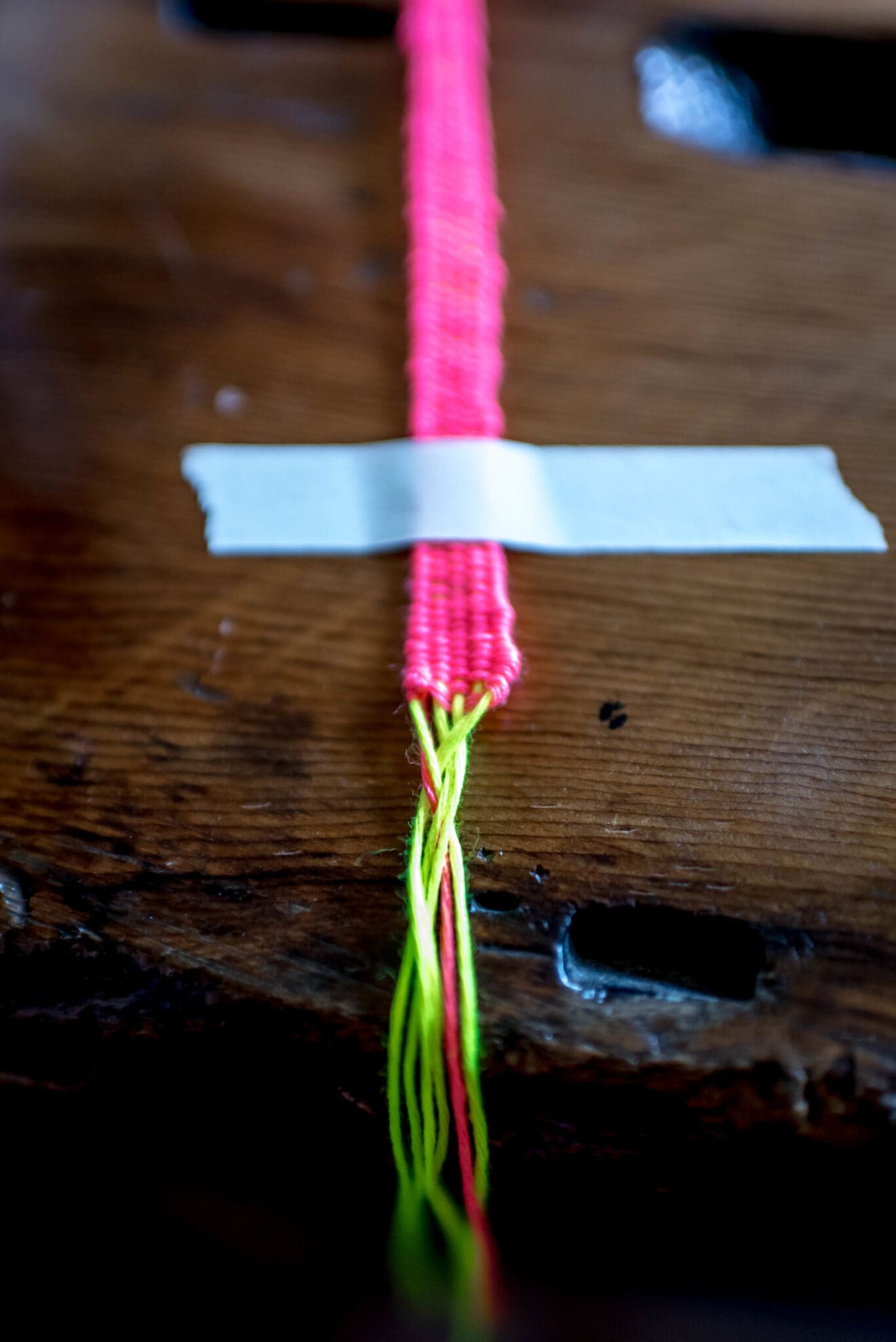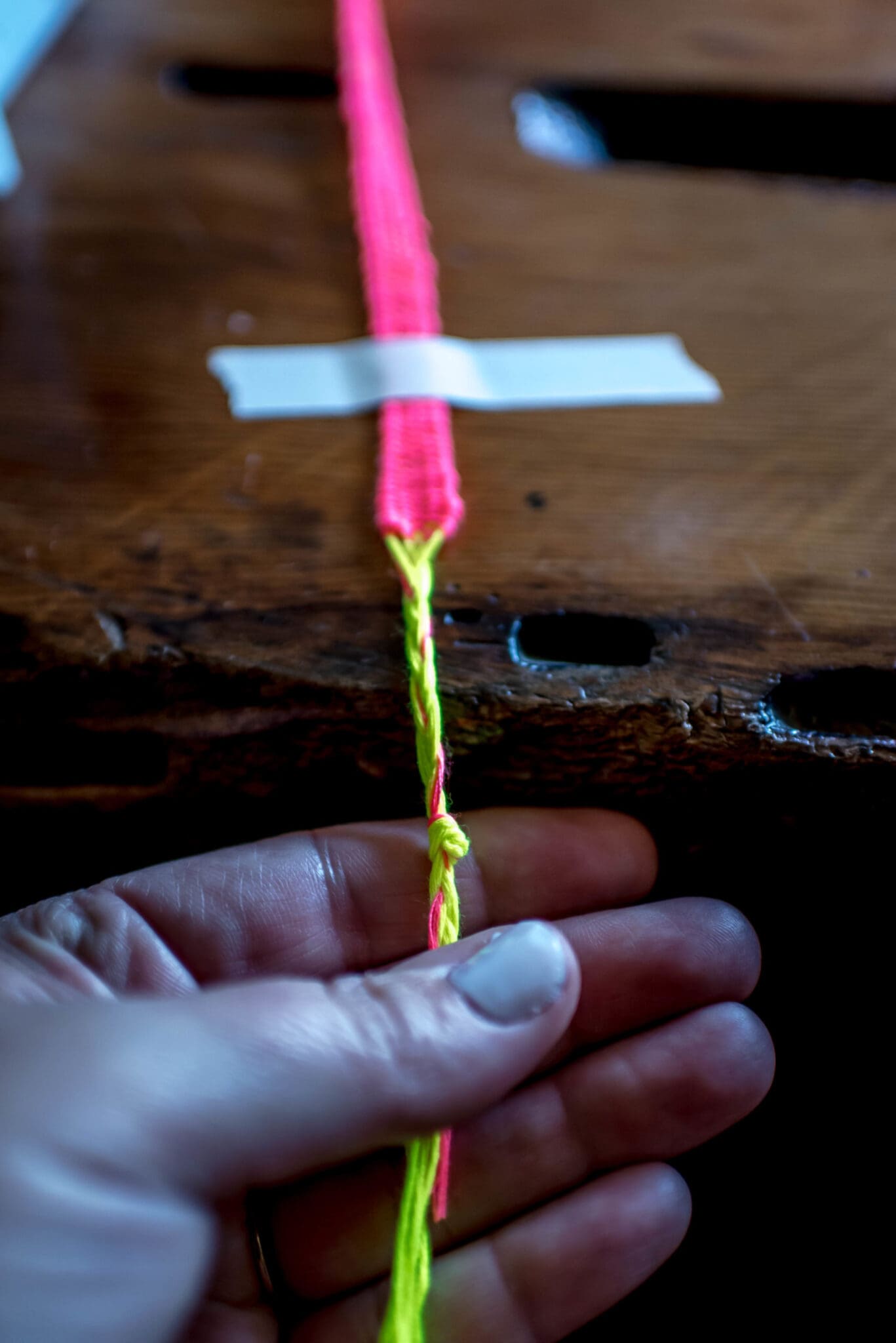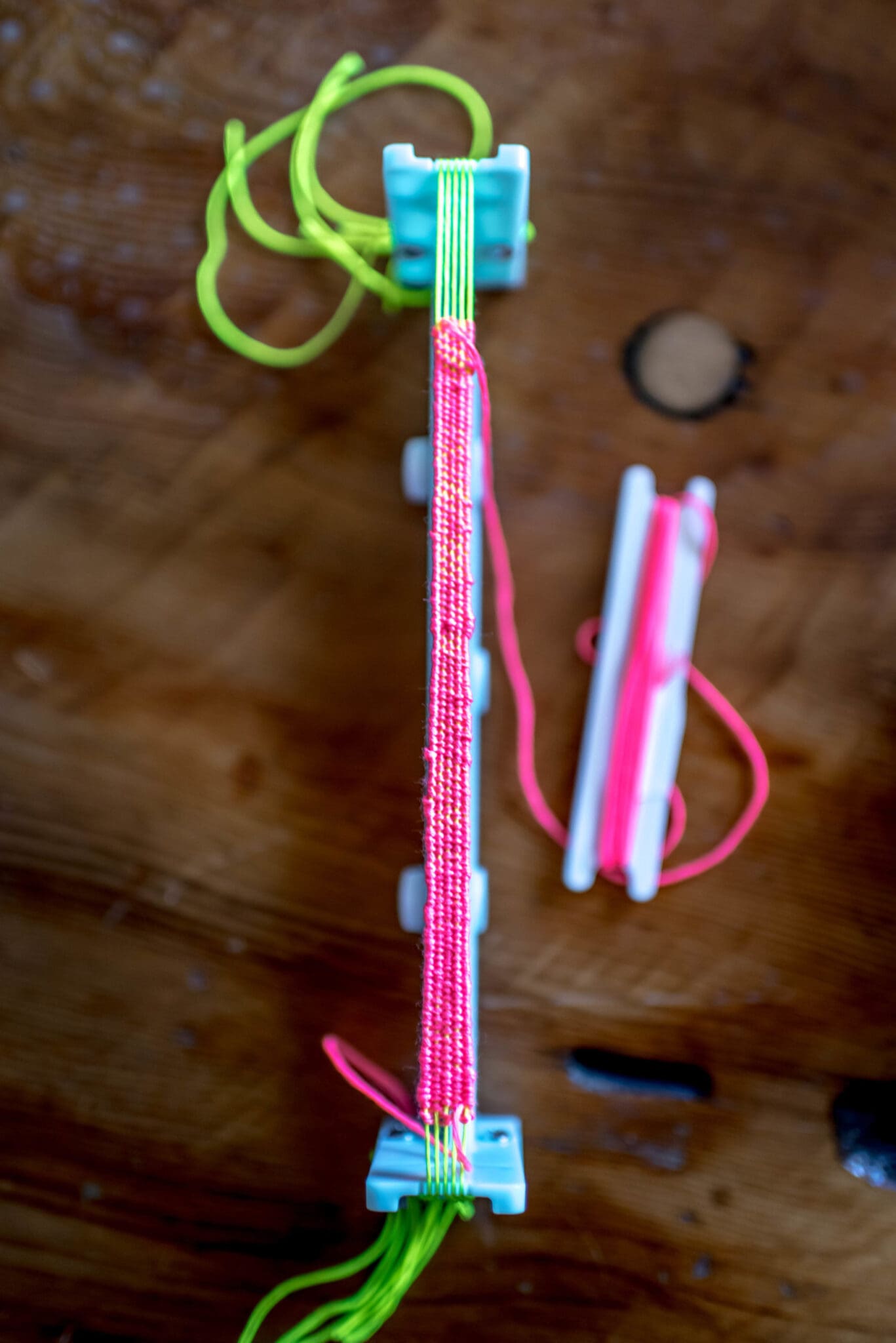 Continue weaving until the bracelet is the length you’d like it to be. Keep in mind that you will use the warp threads to tie off the ends of the bracelet. Once mine was the length I wanted it, I tied a knot off with my weaving thread, just like I had to start it, but on the opposite end.