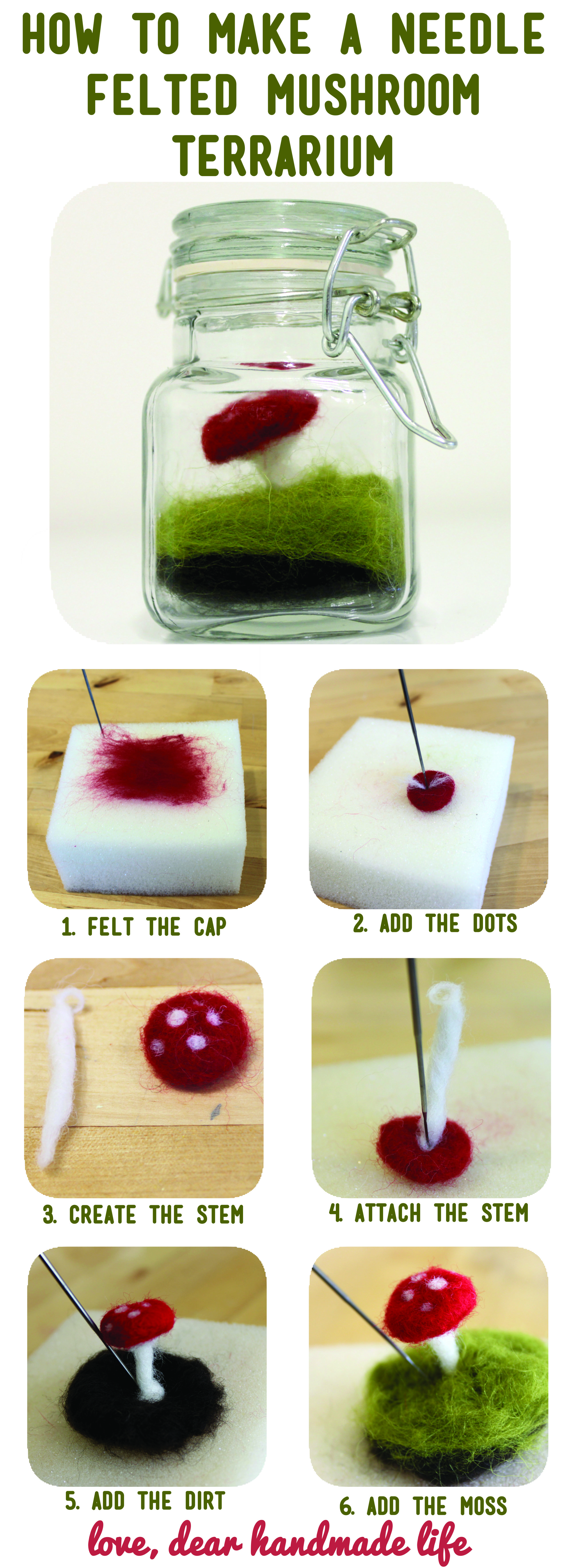 Given that I don’t have much free time, I love projects, like this needle felted terrarium, that could easily be completed in 30 minutes or less. And I mean, c’mon, it’s adorable! And the best part is that it will still look great years from now, which makes it the perfect gift for busy brown thumbs such as myself 🙂