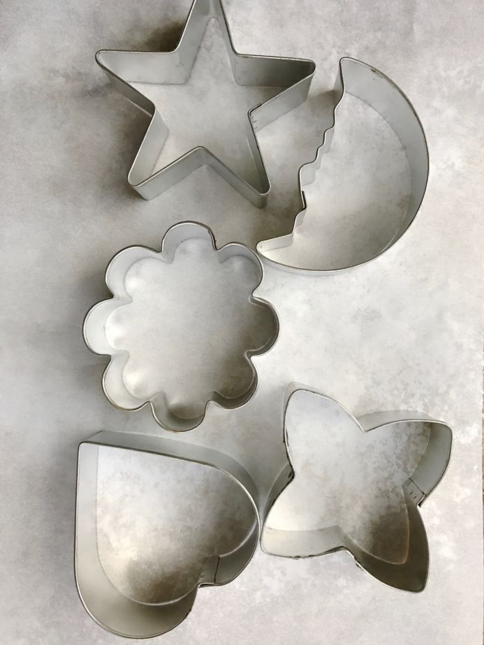 2. Line a cookie sheet with parchment paper. Place 8-10 cookie molds, depending on their size on top of the paper.
